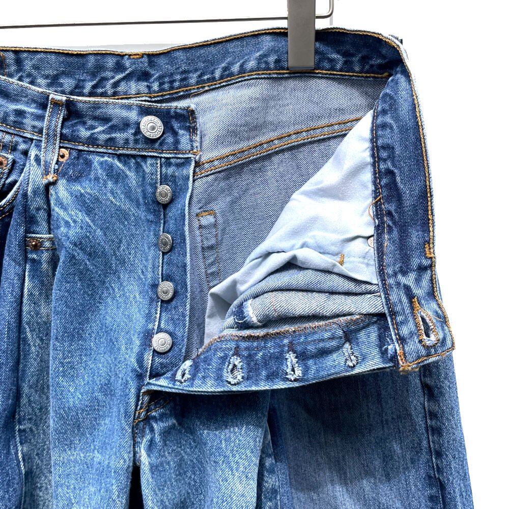 By using two pieces, it has a wide silhouette that is not found in second-hand clothes, and the waist is deeply tucked to create a more voluminous feel and an elegant drape.