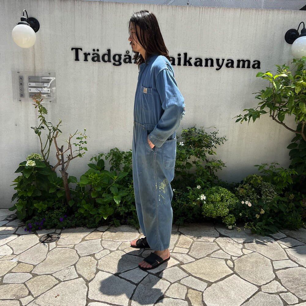 60s Sears vintage all-in-one The dirt and damage as a realistic workwear, and the tasteful dusty saxophone blue herringbone twill fabric has a very nice atmosphere. It is also recommended to wear it by wrapping it around your waist.