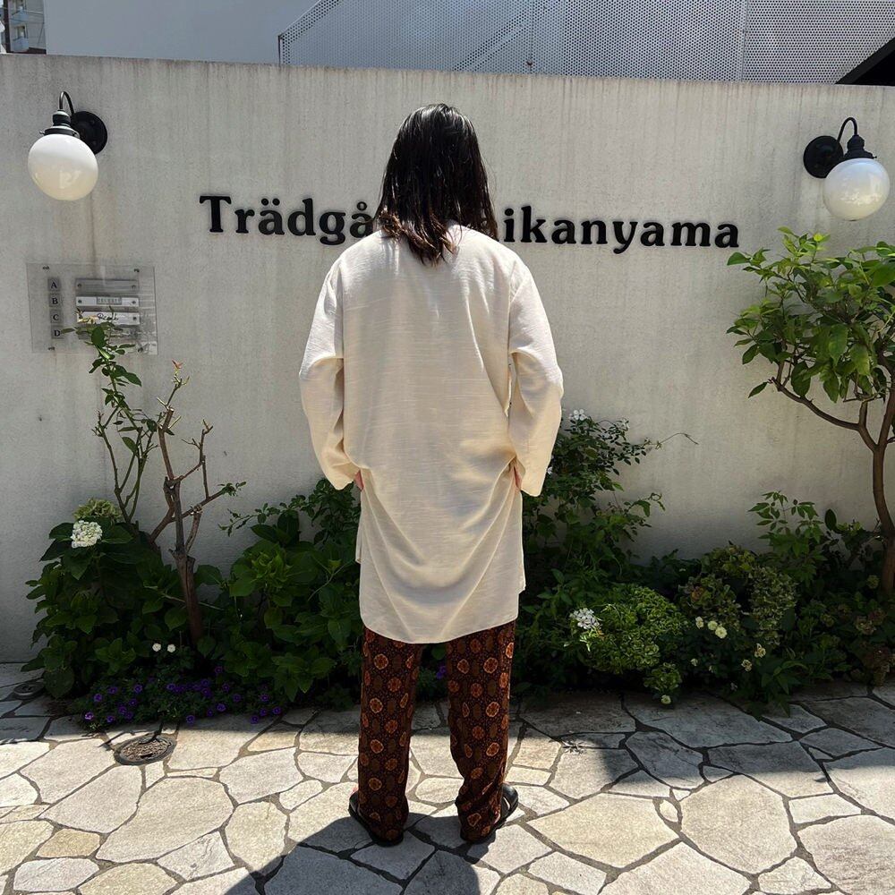Long-sleeved pullover from the 80s Muslim shirt Good ivory color and kasuri weave fabric with a good atmosphere One piece with a cotton and polyester blend fabric that feels smooth and comfortable The long silhouette with a loose and relaxed feeling is full of exoticism It is the first place