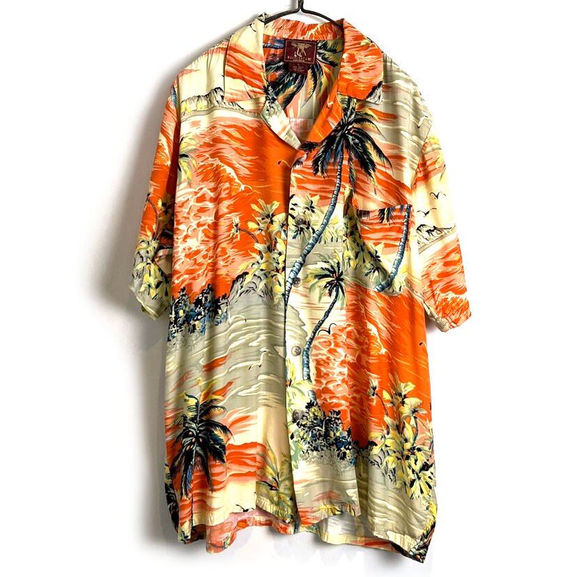 A 90s short-sleeved Hawaiian shirt with a somewhat nostalgic feel to the orange waves dyed in the setting sun. Soft, light and soft 100% rayon fabric with a soft feel.