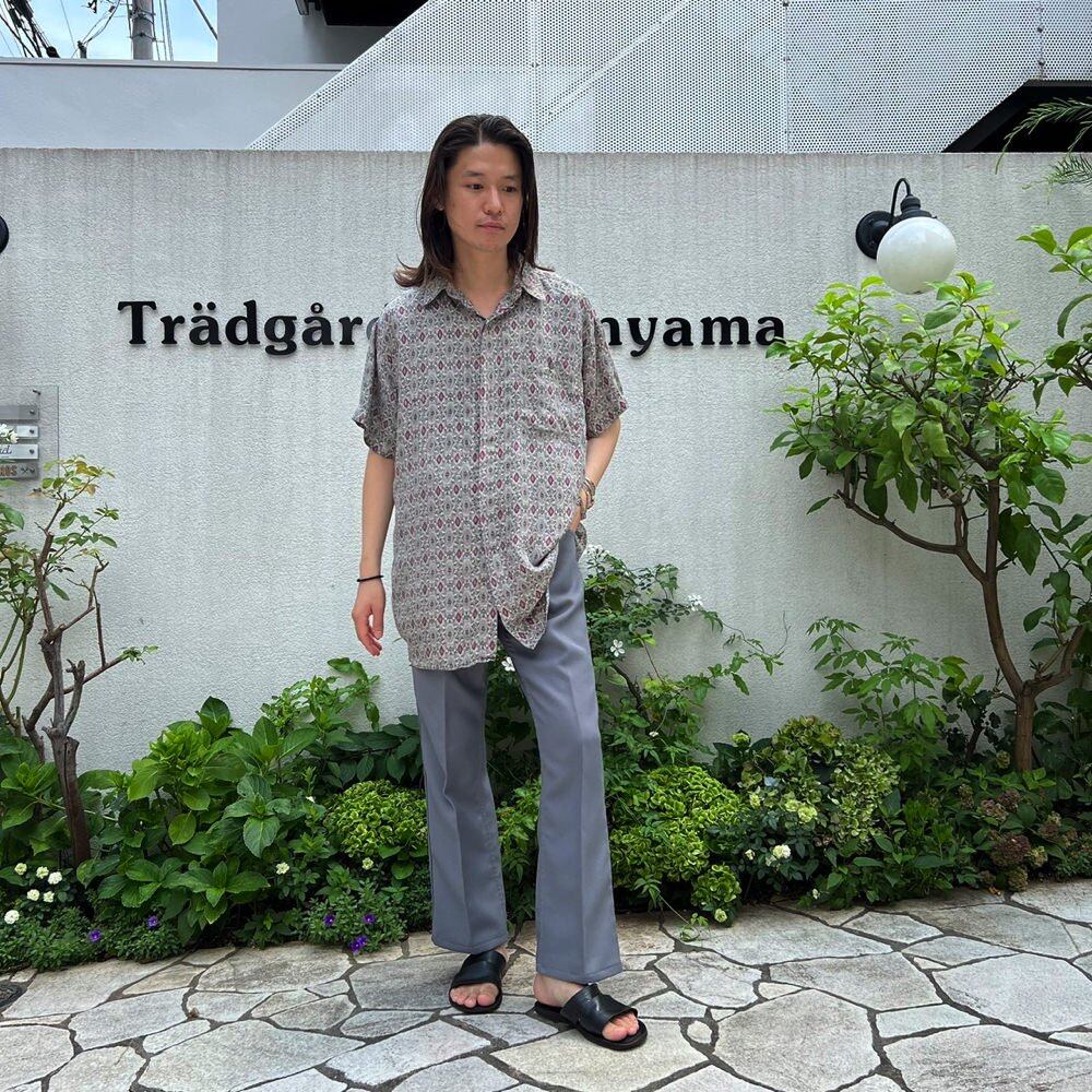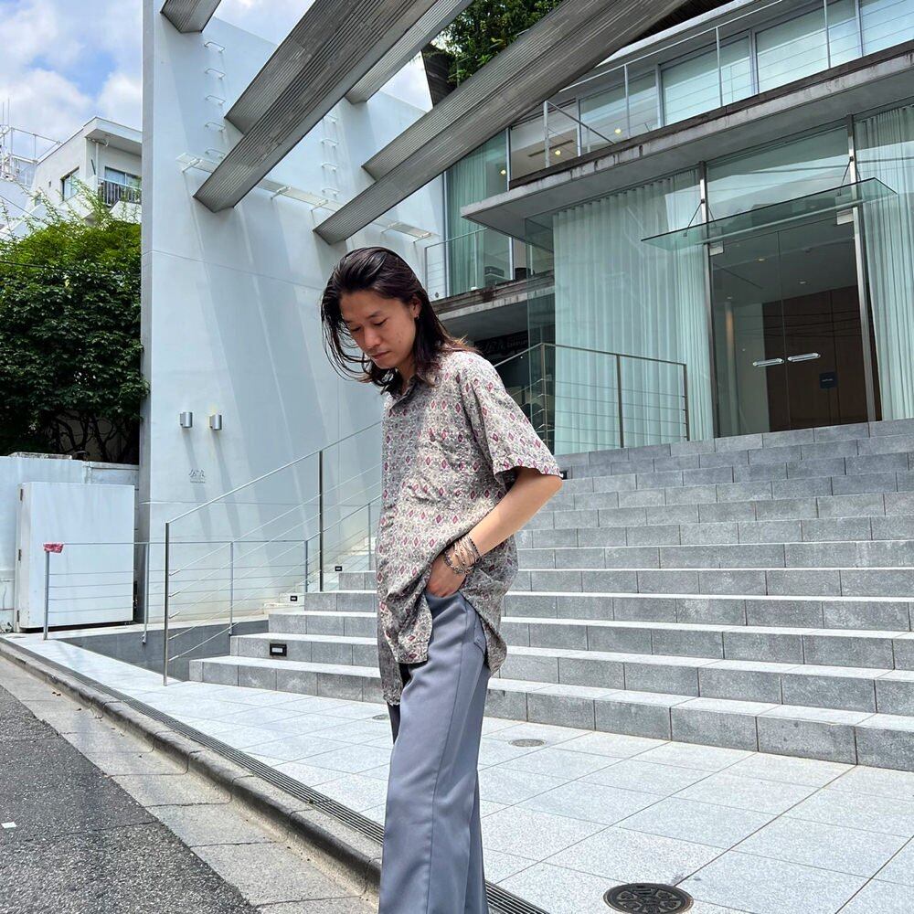Short-sleeved silk shirt from the 90s Gray x wine batik pattern gives a mature impression