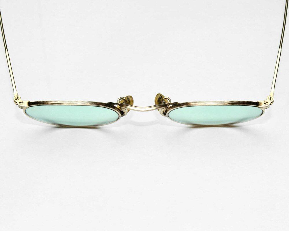 1940s vintage [American Optical] glasses. A full-view type Boston round frame with temples on the top, which was developed in the automobile society. Model Sampson is a robust type with a reinforced bridge. The finished Boston round frame has a minimalist silhouette that can be called an eternal classic. 12Kt- Yellow Gold gold-plated. Newly installed light green UV lenses. It has been appraised and maintained by an optician, and the size of the temple (or rope) can be adjusted. (At a nearby eyeglass shop) Although the condition has been carefully examined, there are scratches and scuffs as this is a vintage product. Please purchase after understanding the characteristics of vintage and antique. All of our eyeglasses are maintained and lens exchanged at g room, an eyewear store in Ebisu, Tokyo.