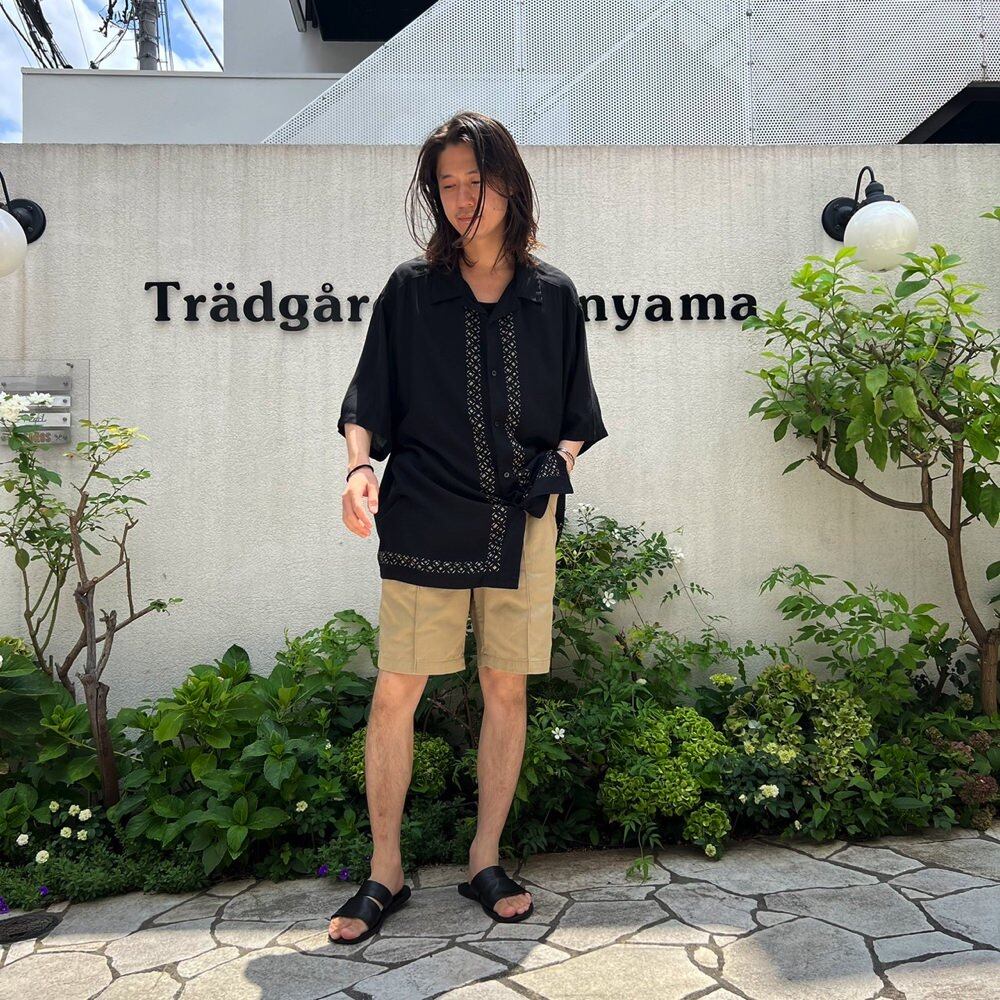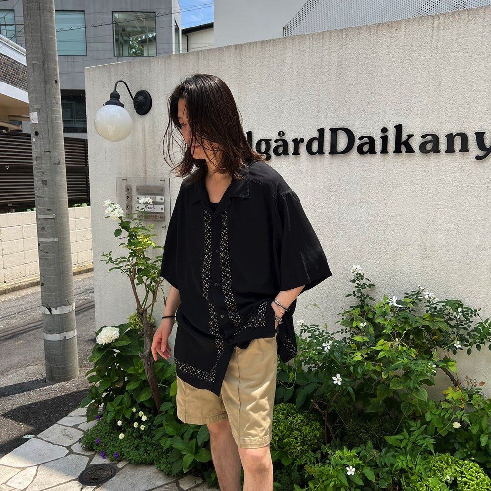 A short-sleeved rayon shirt from the 90s with a relaxed oversilhouette and a nice atmosphere. The ethnic image pattern printed from the front to the hem is also a good accent.