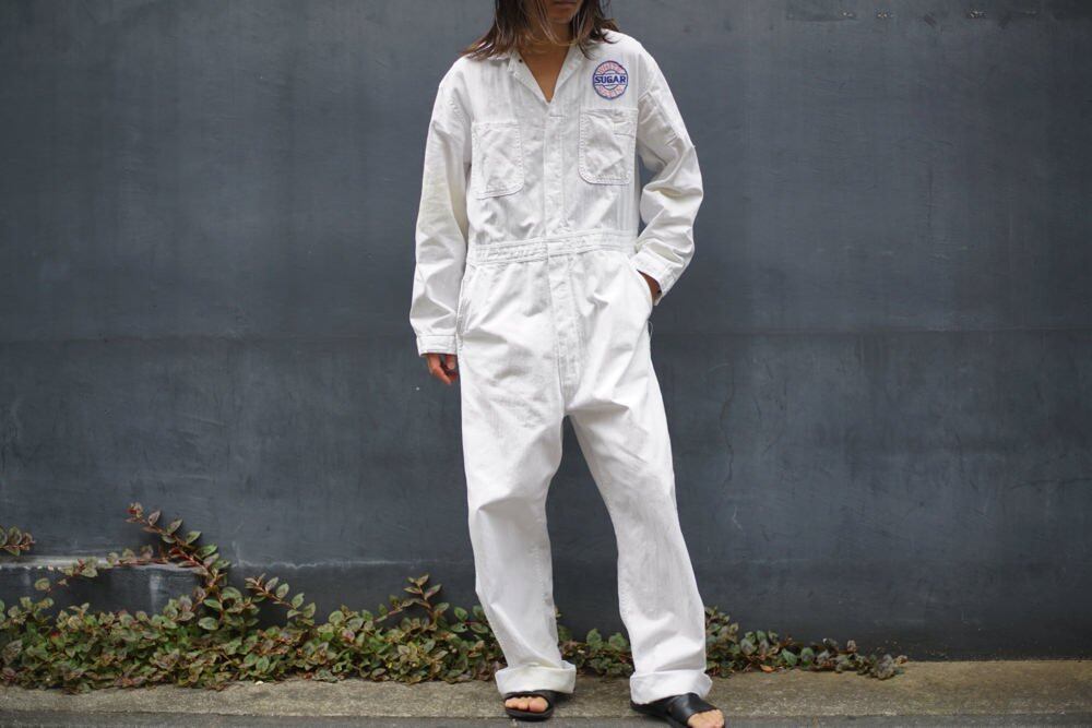 Around the 1970s, a herringbone twill all-in-one fabric with a natural texture that has just the right amount of thickness and firmness is used, and the beautiful white color, which is rare in vintage, is eye-catching.