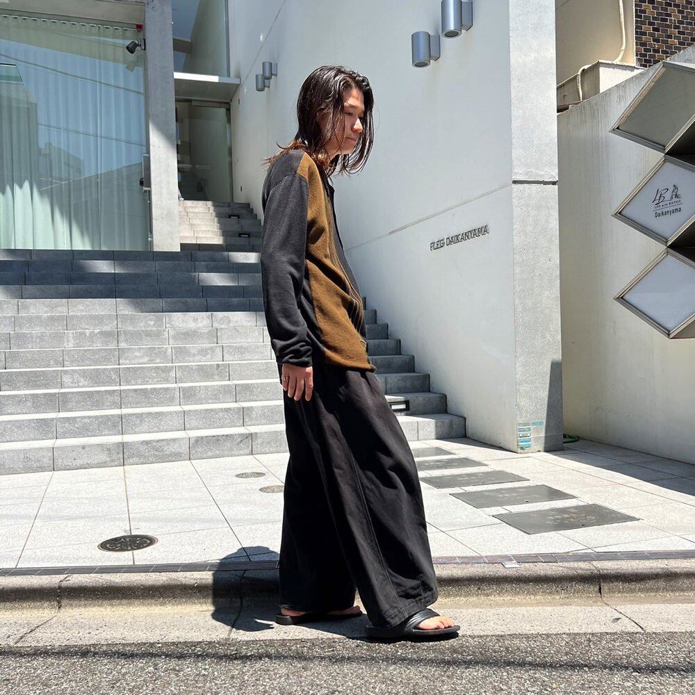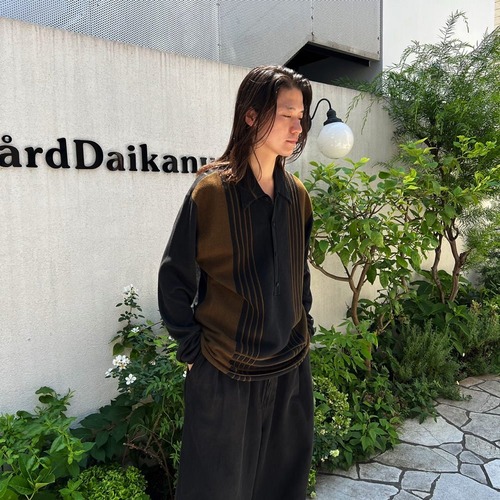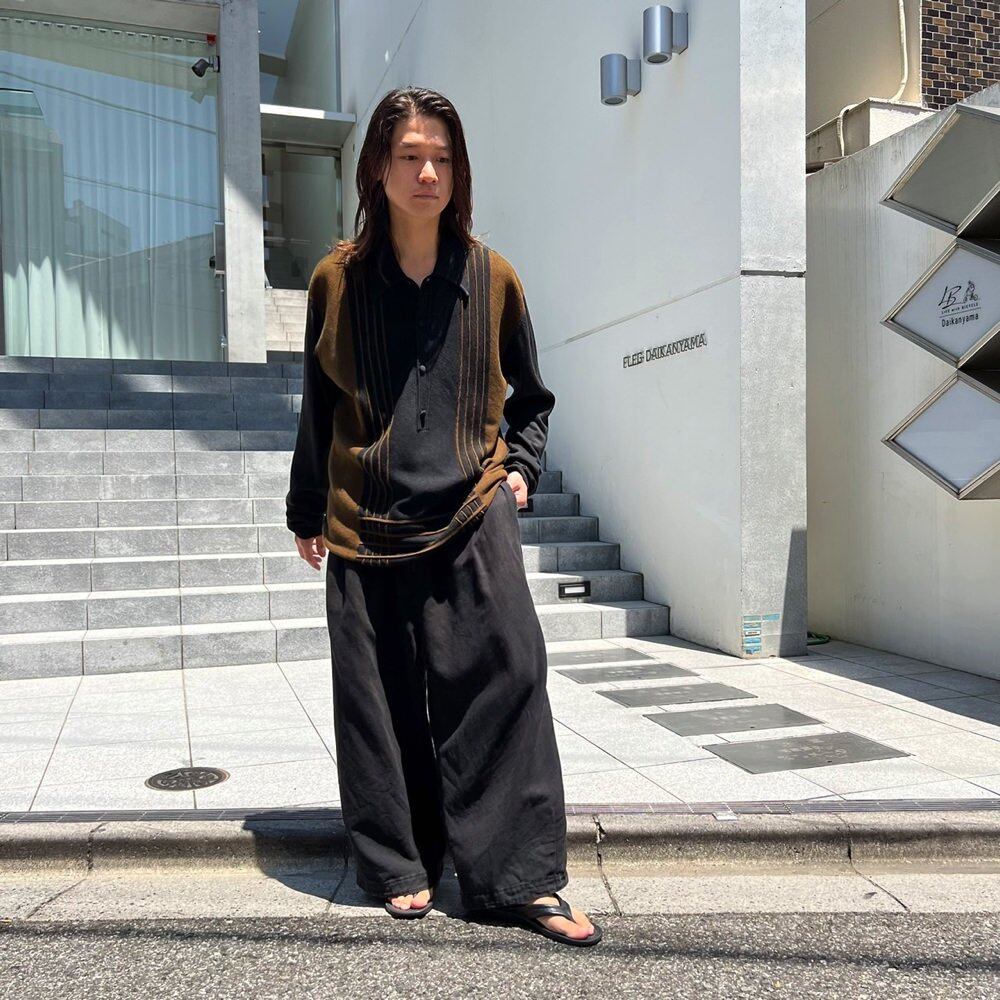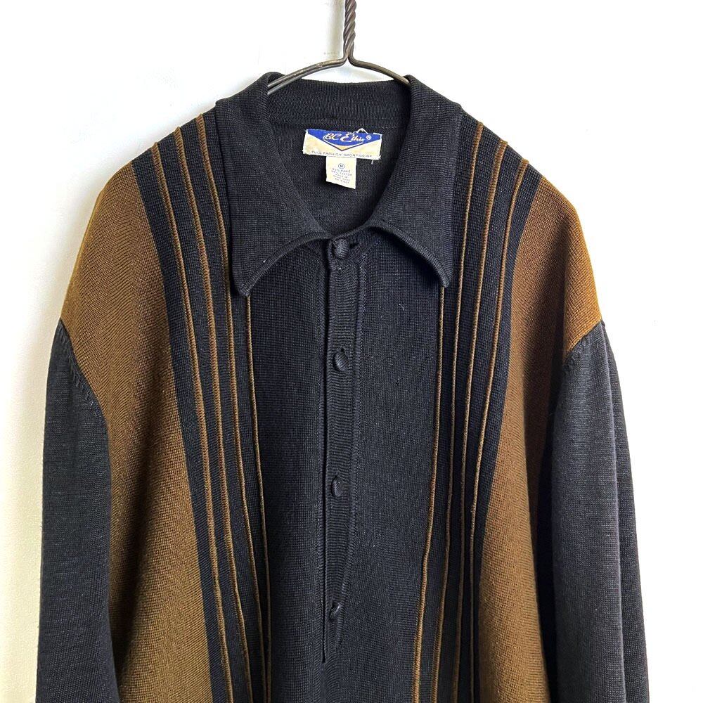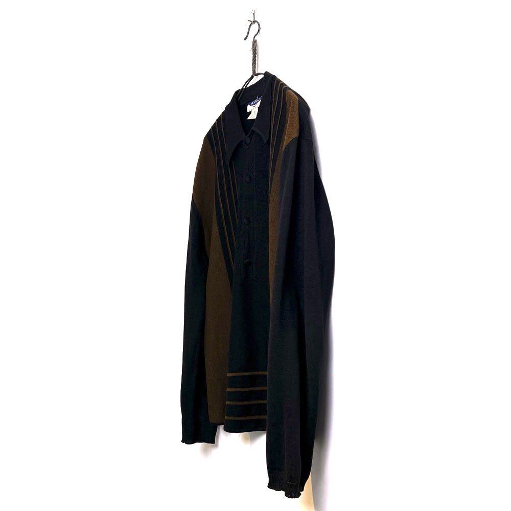 Knit shirt from the 80s, ramie (ramie) x cotton smooth and dry to the touch, comfortable skipper neck design, black x brown dark 2-tone color gives a mature and masculine atmosphere with a good silhouette with just the right amount of room One piece can be worn in summer due to the material, but it is recommended for autumn.