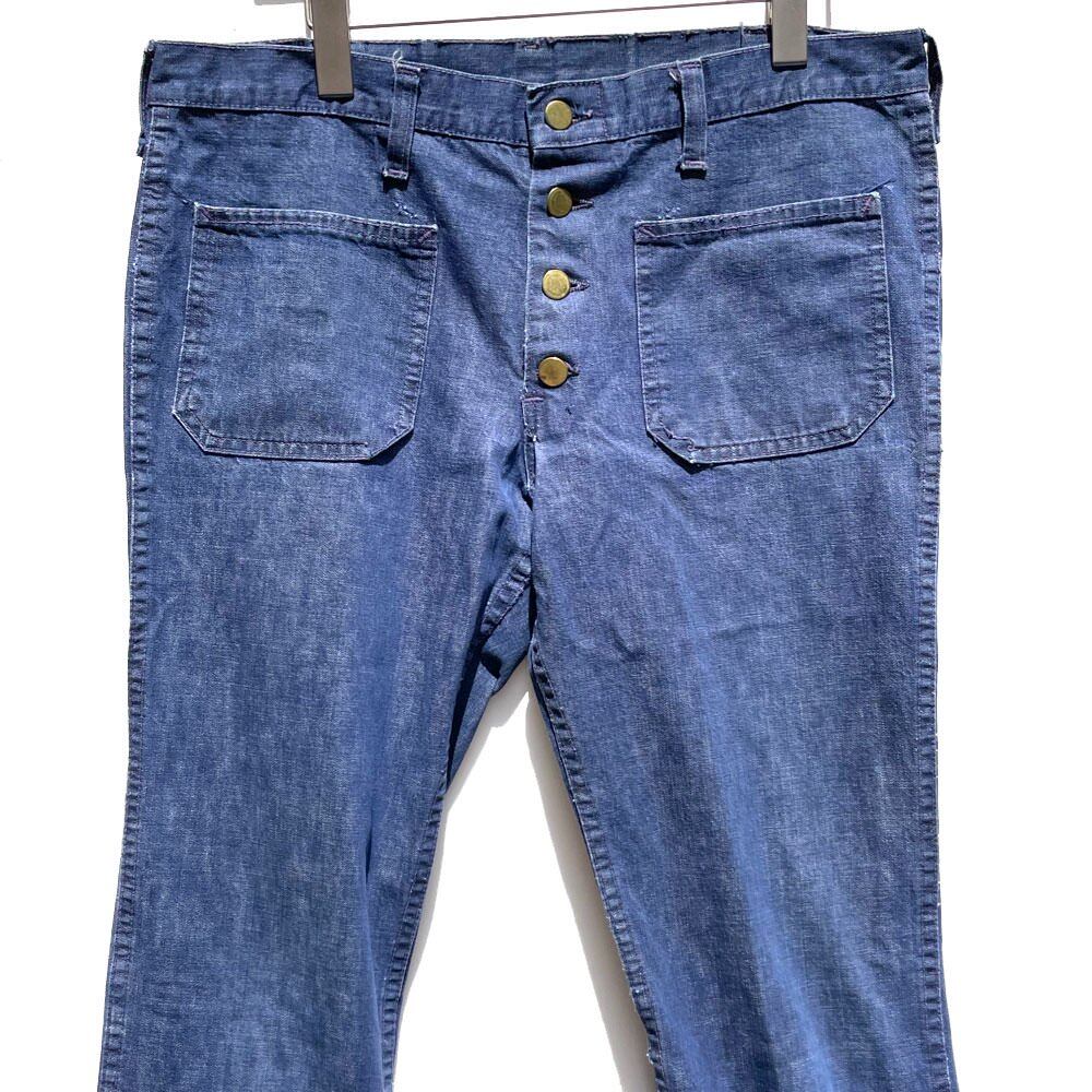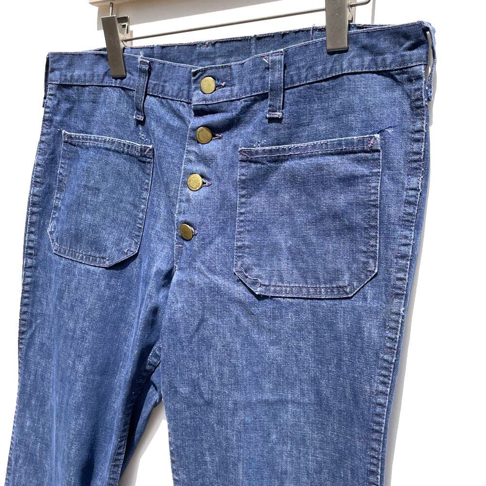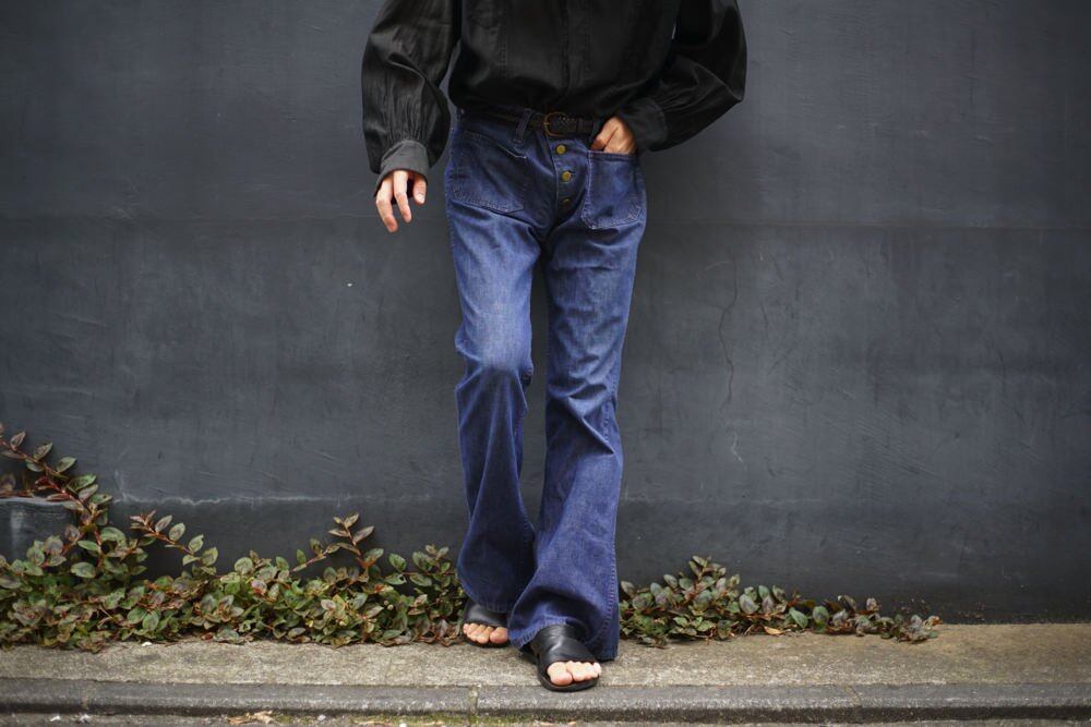 1970s Leens bell-bottom denim pants.