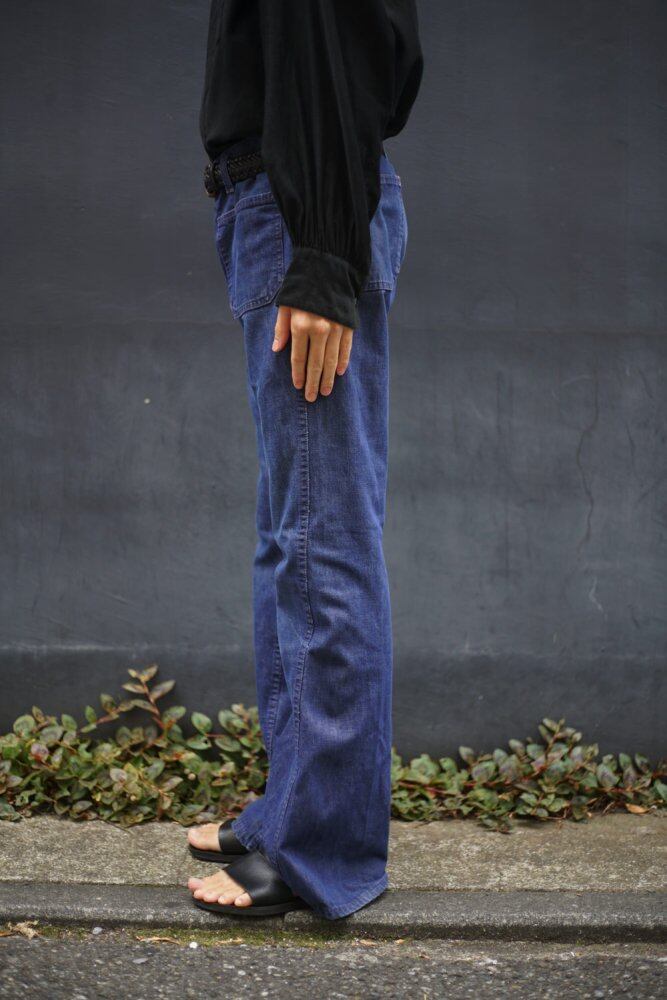Light ounce denim with a light texture is comfortable to the touch, and the powerful flared silhouette is attractive.