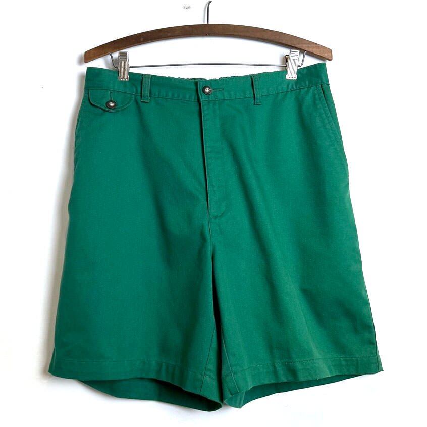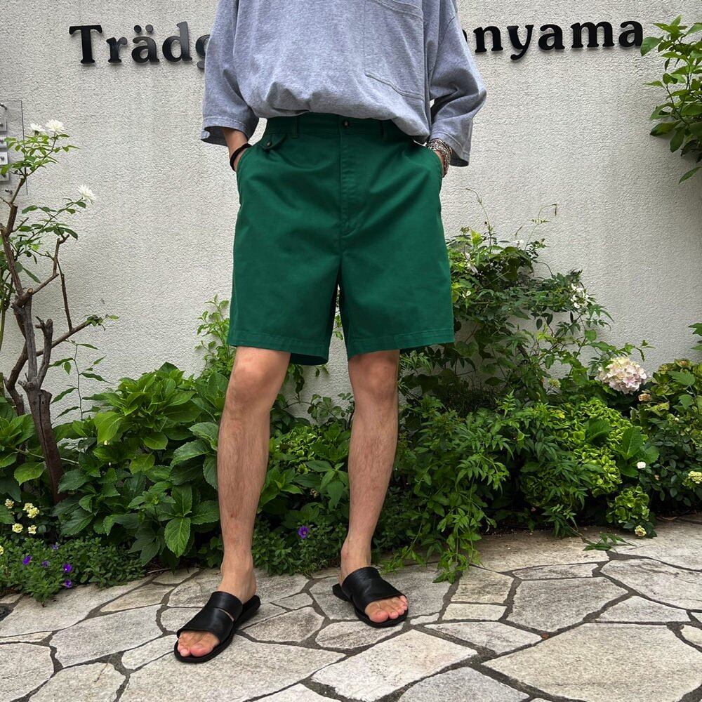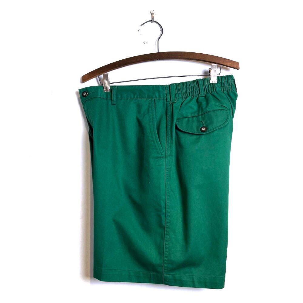 90s Town Craft Knee-length vintage shorts with just the right amount of width. Bright green color is also one of the colors that shines in summer. Soft and light cotton x polyester chino cloth.