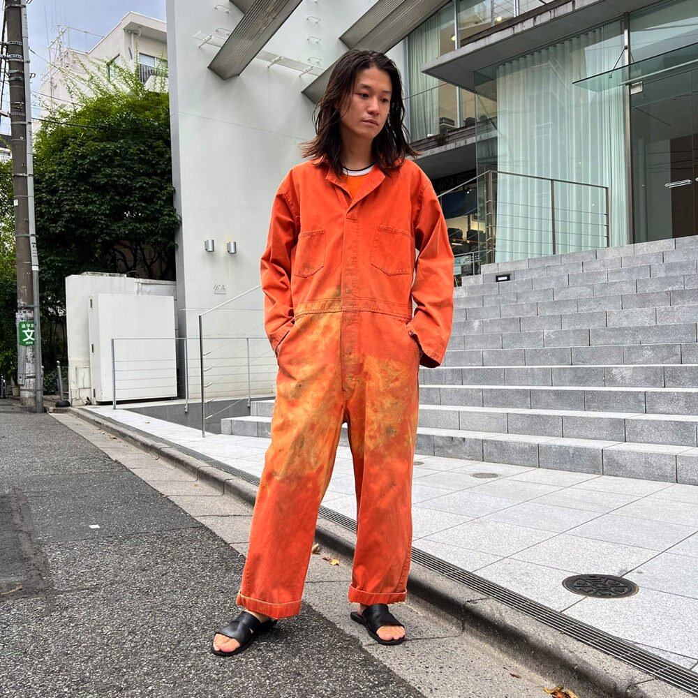 A vintage all-in-one from the 1960s that is artistic and one-of-a-kind with stains and bleaching from the waist to the knees as a realistic work item. In the summer, we also recommend wearing it tied at the waist.