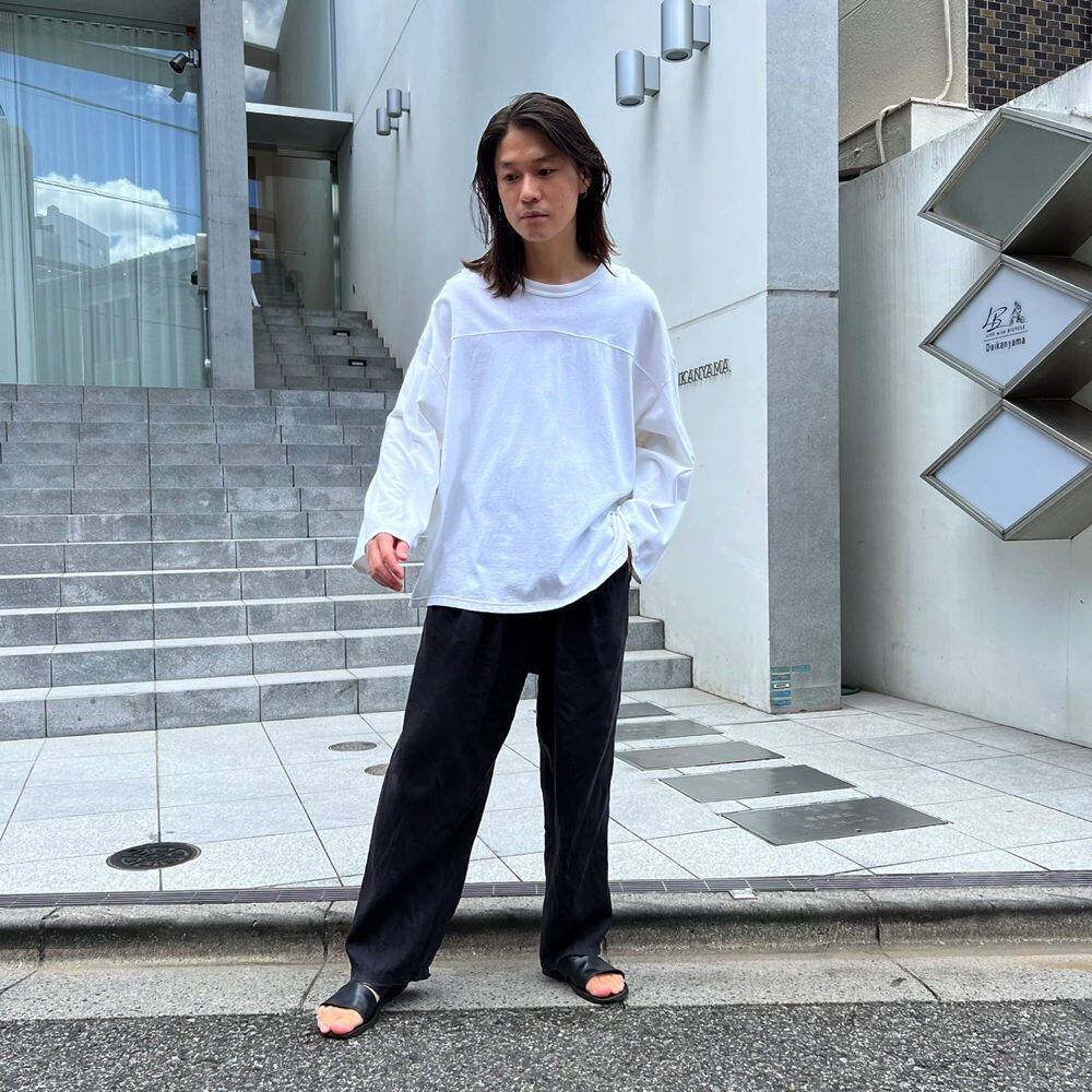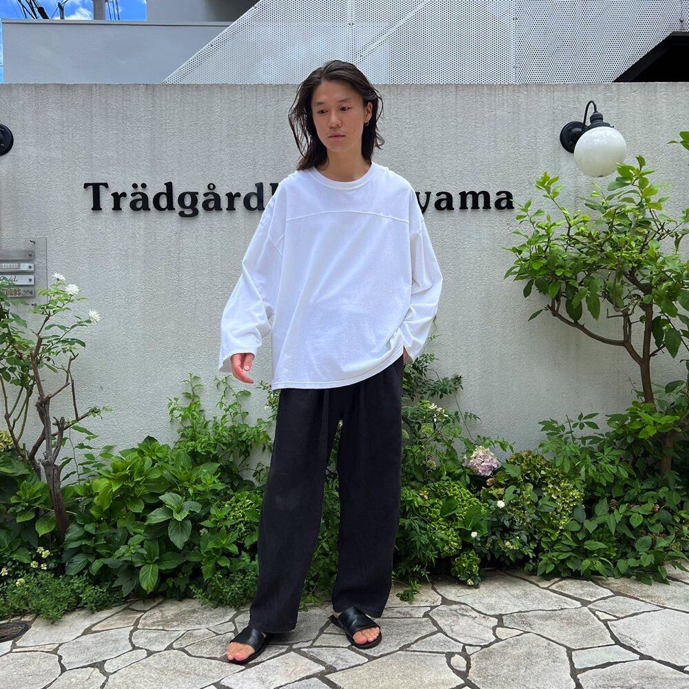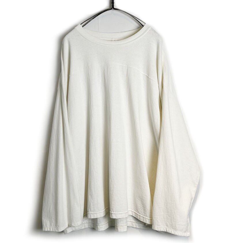 A 2XL size long-sleeved T-shirt remade into a football T-shirt The sleeve length and length are readjusted to create a well-balanced silhouette according to the relaxed width of the body. It is dyed in a white color that gives a soft impression. Minimal design that eliminates waste, simple and easy to match.