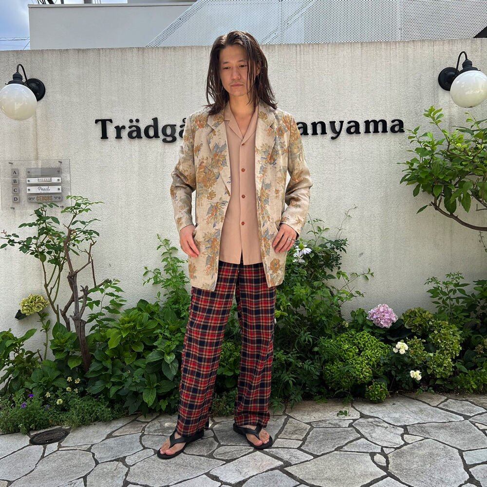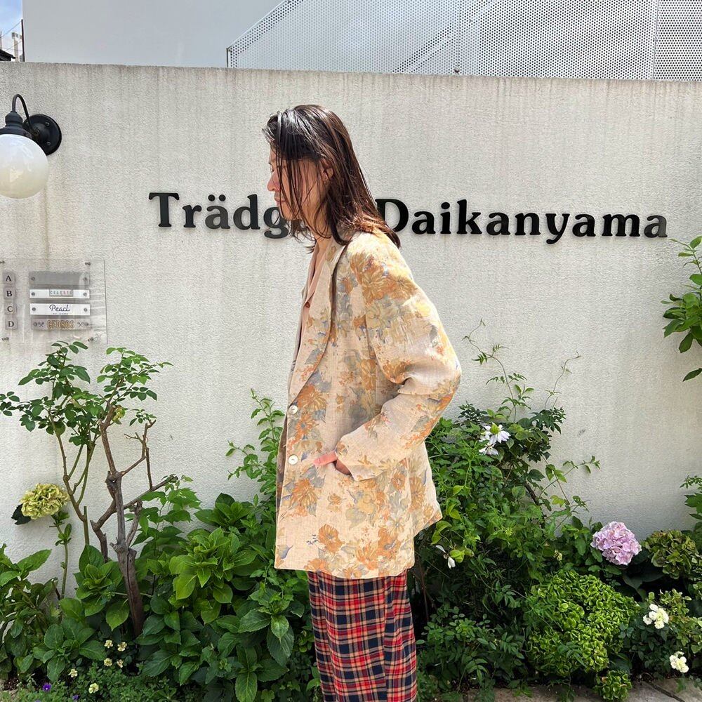 Linen jacket from the 80s A piece with botanical art printed in a grayish beige color with a nice atmosphere. A lightweight 100% linen jacket that is perfect for autumn wear. , Good Silhouette Vintage Jacket
