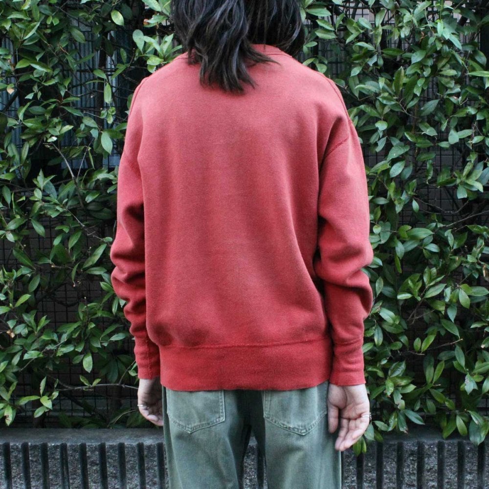 A vintage sweatshirt from the 1950s. The faded and indescribable elegant red color body combined with the small flocky print gives it a very subdued appearance. Although there is aging, it is an individual in good condition overall, which also makes it look more elegant. A very rare size that can be worn comfortably in this age where many things are too small. The 100% cotton fabric, which is only available up to the 70s, has a natural and moist texture. Quality: Cotton 100% Color: Aging Red SIZE: Unknown [Size] Shoulder Width: 58cm Width: 58cm Sleeve Length: 58cm Length: 63cm [Model Size] Height: 175cm Shoulder Width: 43cm B (Chest): 85cm W (Waist): 71cm Old Since it is a thing, there is rarely aged deterioration. Although we try to make the product photos as close to the actual color as possible, the color of the actual product may differ depending on your monitor settings, room lighting, etc. Please check the photos and understand the vintage characteristics before purchasing. ※Please refer to here for the measuring method.