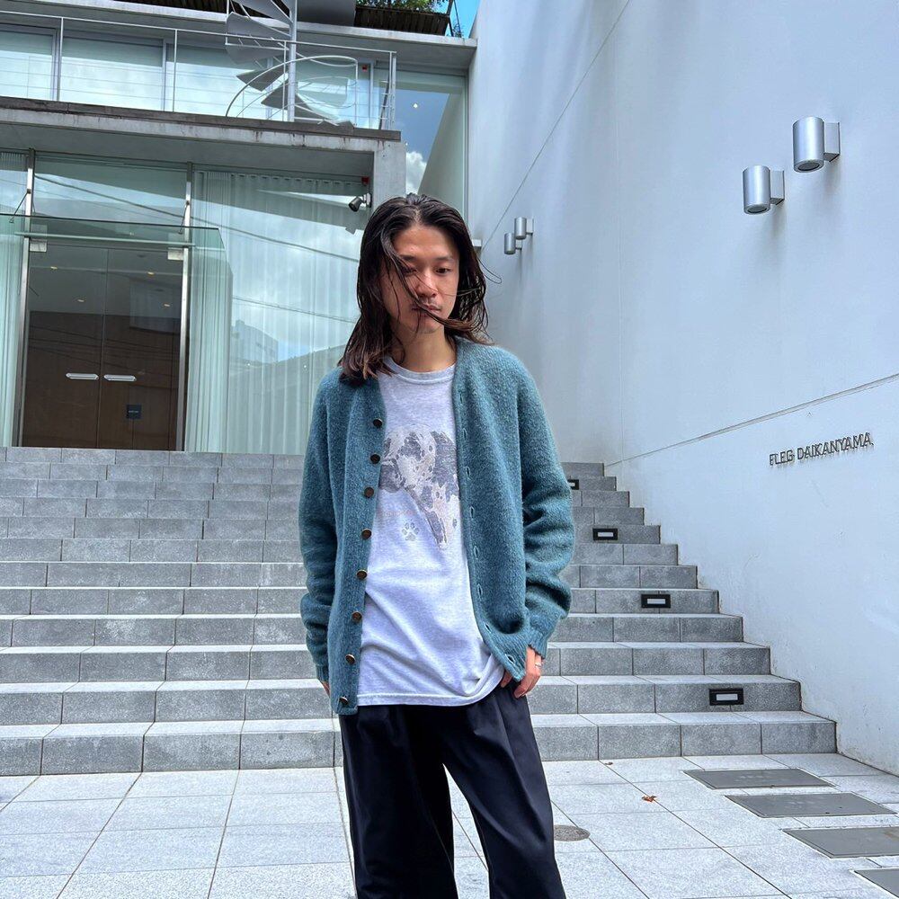 60s Berkeley mohair cardigan A mix of saxophone blue and gray vintage mohair The size notation is L size. Its an easy-to-match item. Vintage mohair items are getting more expensive year by year, so dont miss it!