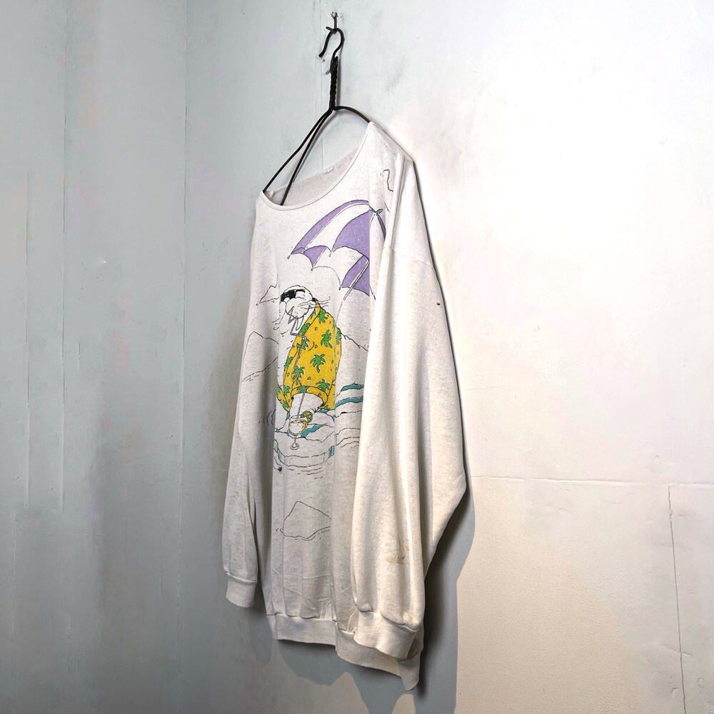 Sweatshirt from the 80s Wearing an Aloha shirt and drinking tropical juice Walrus summer vacation The texture of the print rubbed against the dusty white color and the extremely slim Terror Terror sweatshirt fabric also has a good vintage atmosphere. One piece that can be worn like a long T-shirt with just the right size