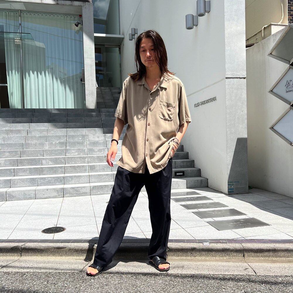 Short-sleeved silk shirt from the 90s Grayish beige color with a calm and mature atmosphere.