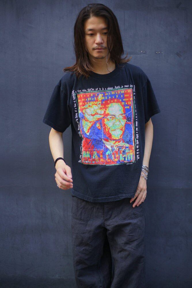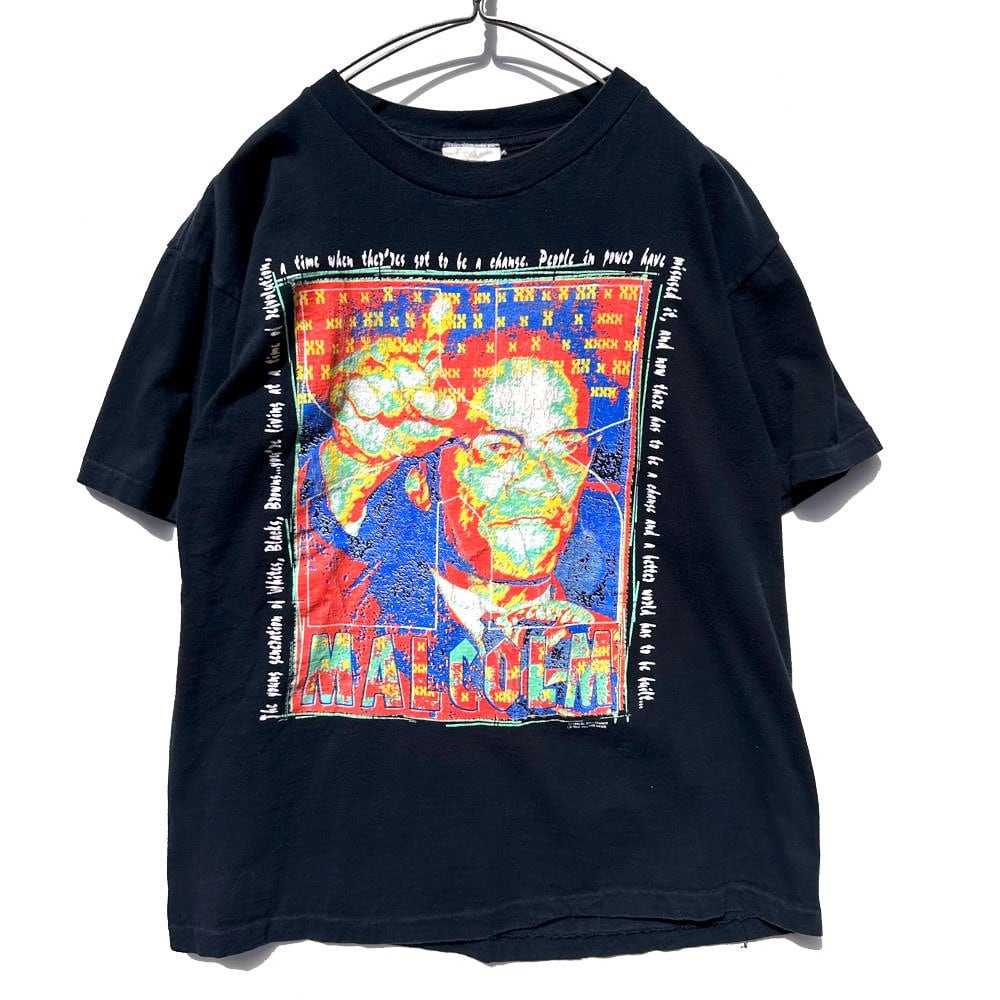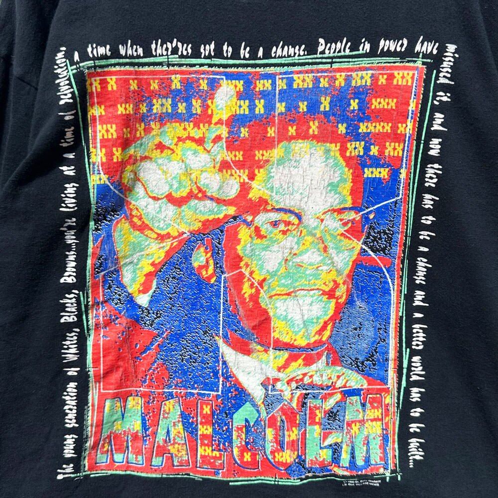 Impressive artwork of Malcolm X print drawn with punkish coloring that shines on the black body.
