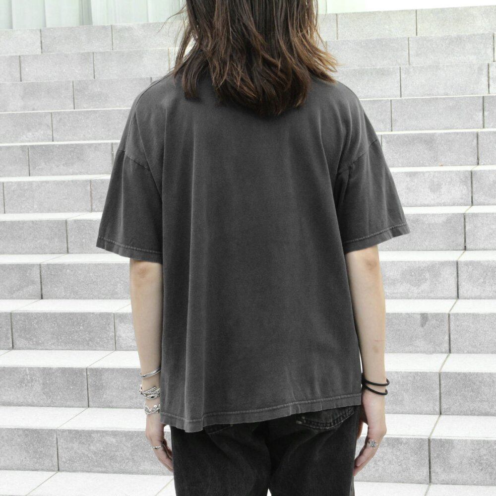Printed T-shirt from Where the Wild Things Are, a picture book by Maurice Sendak, published in 1963. This item has many horizontal prints, but this is a simple piece with a one-point print on the chest. The balance between the body and the print, which has become thicker and darker due to aging, is a sour atmosphere. It is an L size with a roomy width and an interesting boxy silhouette that shrinks vertically. Since it is an old item, it rarely deteriorates over time. Please check the photos and understand the vintage characteristics before purchasing.