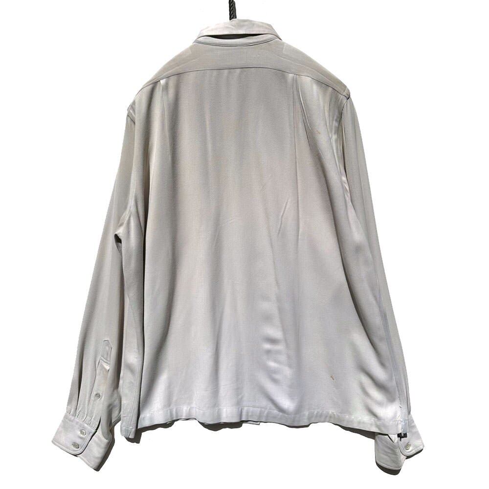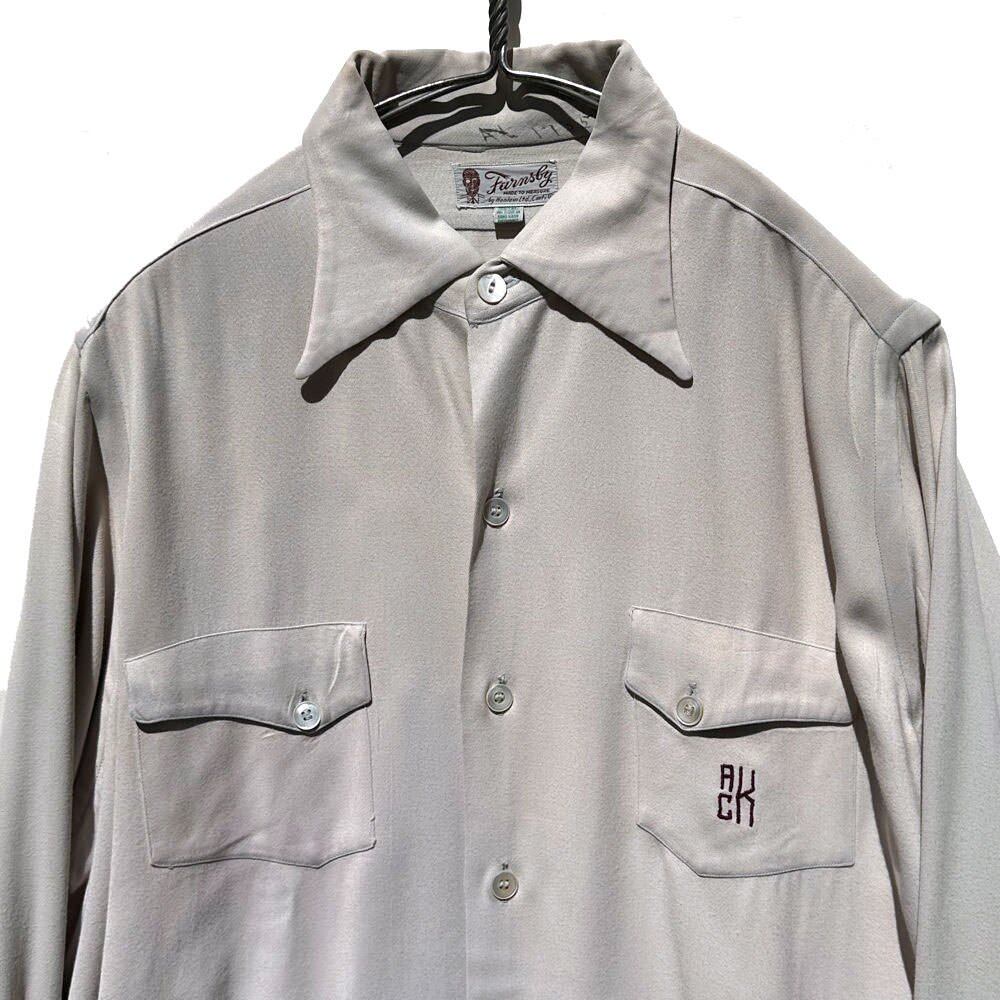 Rayon gabardine monogram embroidered shirt made by FARNSBY, circa 1940s.