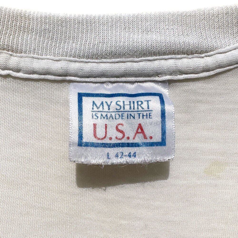 USA made MY SHIRT body, sleeves and hem are single stitched.