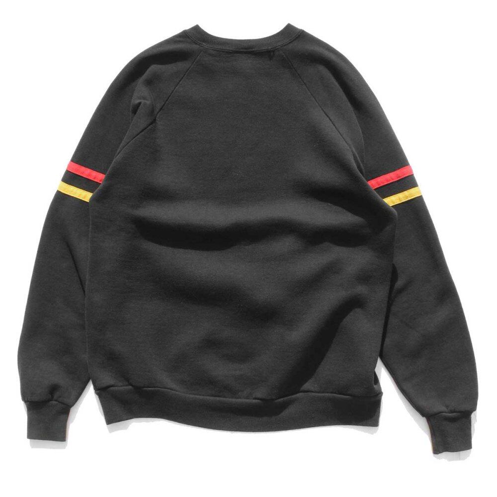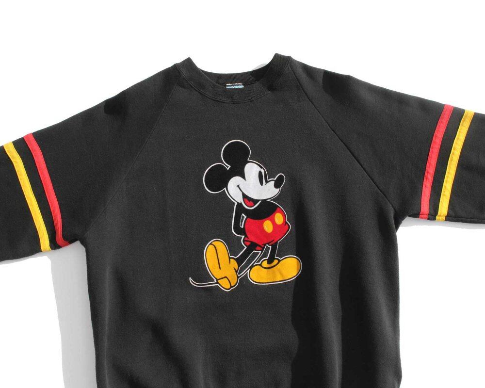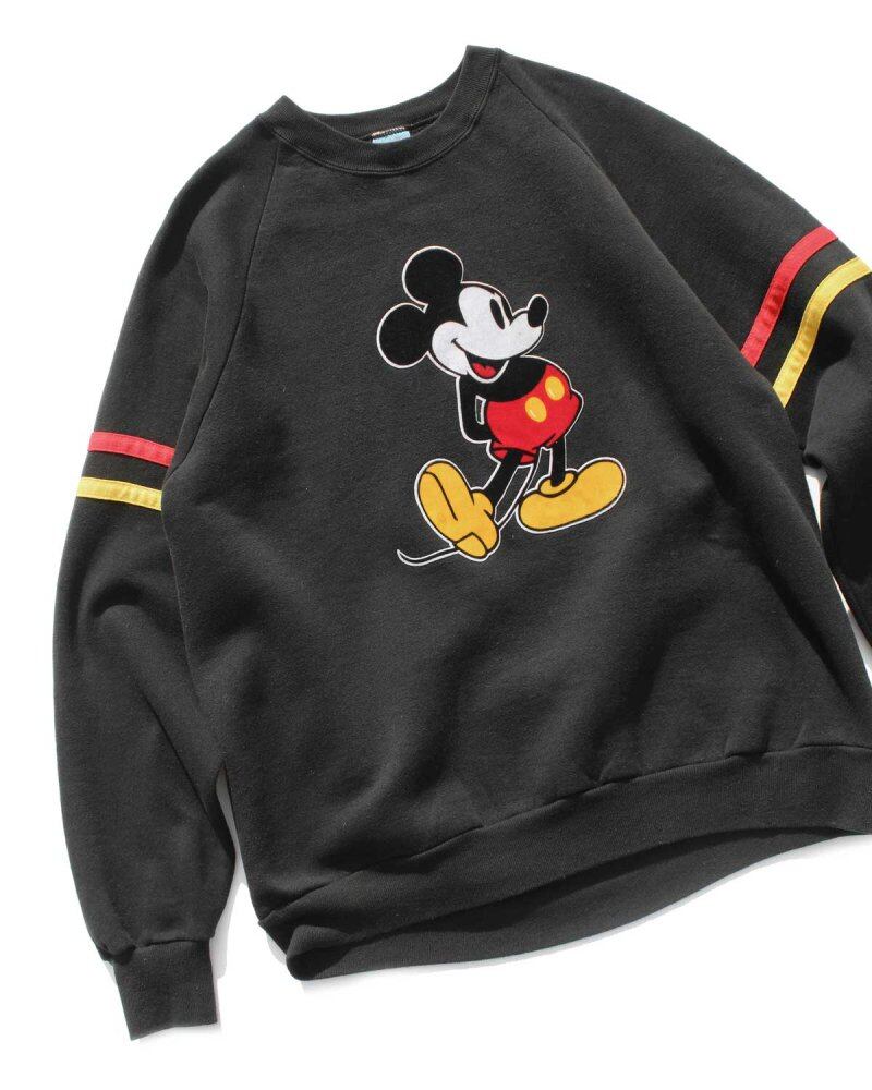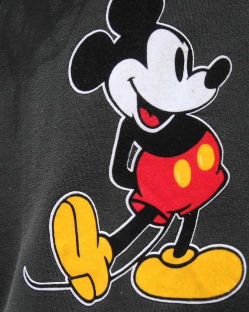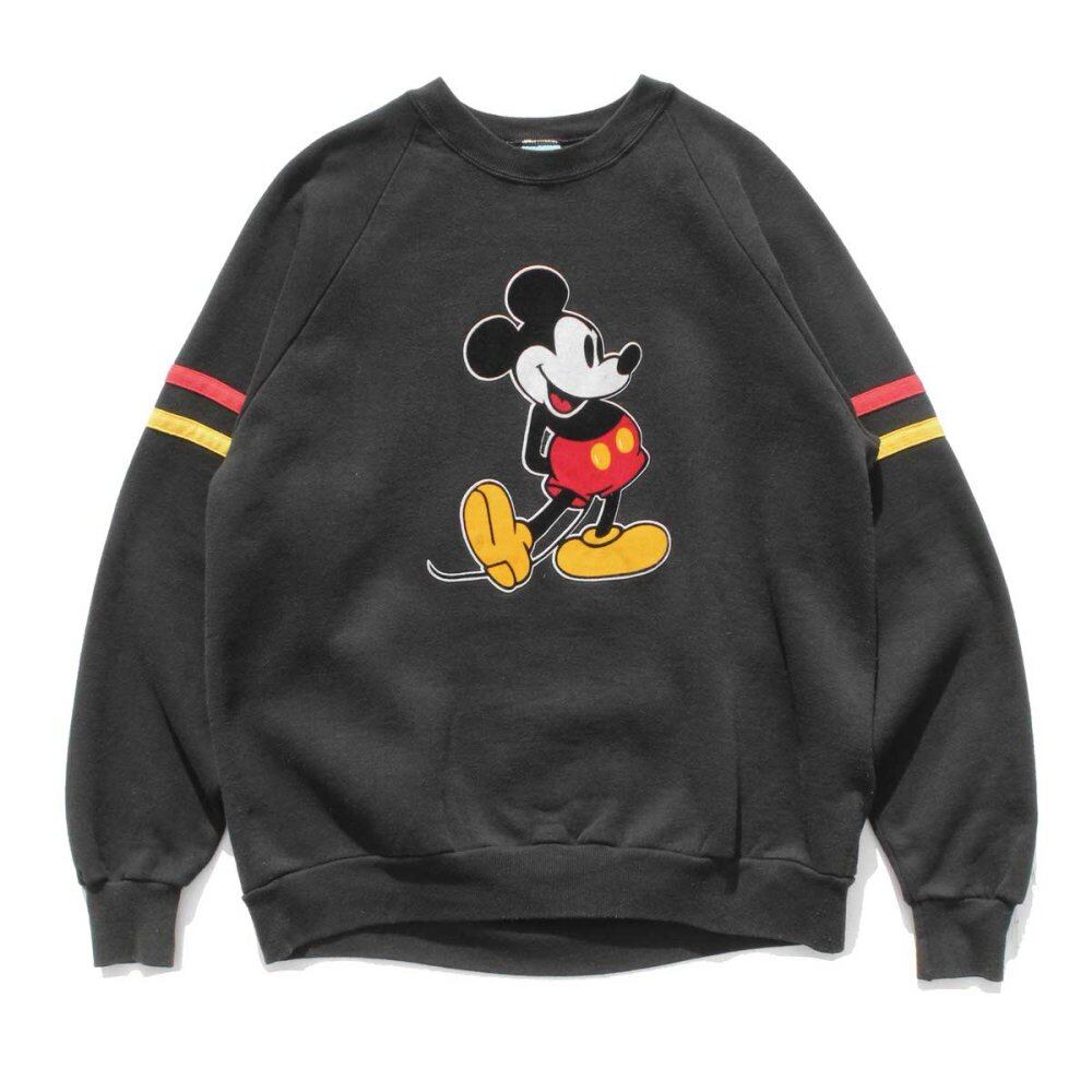 1990s Disney original Mickey print sweatshirt. The flocky print on the front gives it a vintage look. The German color stripe design on the sleeve is also a sporty accent. 2XL size, which is rare for sweatshirts of this age with a small silhouette balance. It is in good condition with some damage on the neck. Since it is an old item, it rarely deteriorates over time. Please check the photos and understand the vintage characteristics before purchasing.