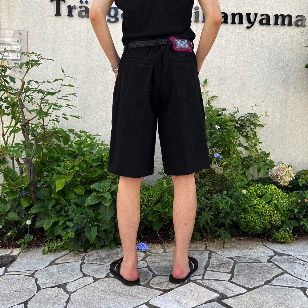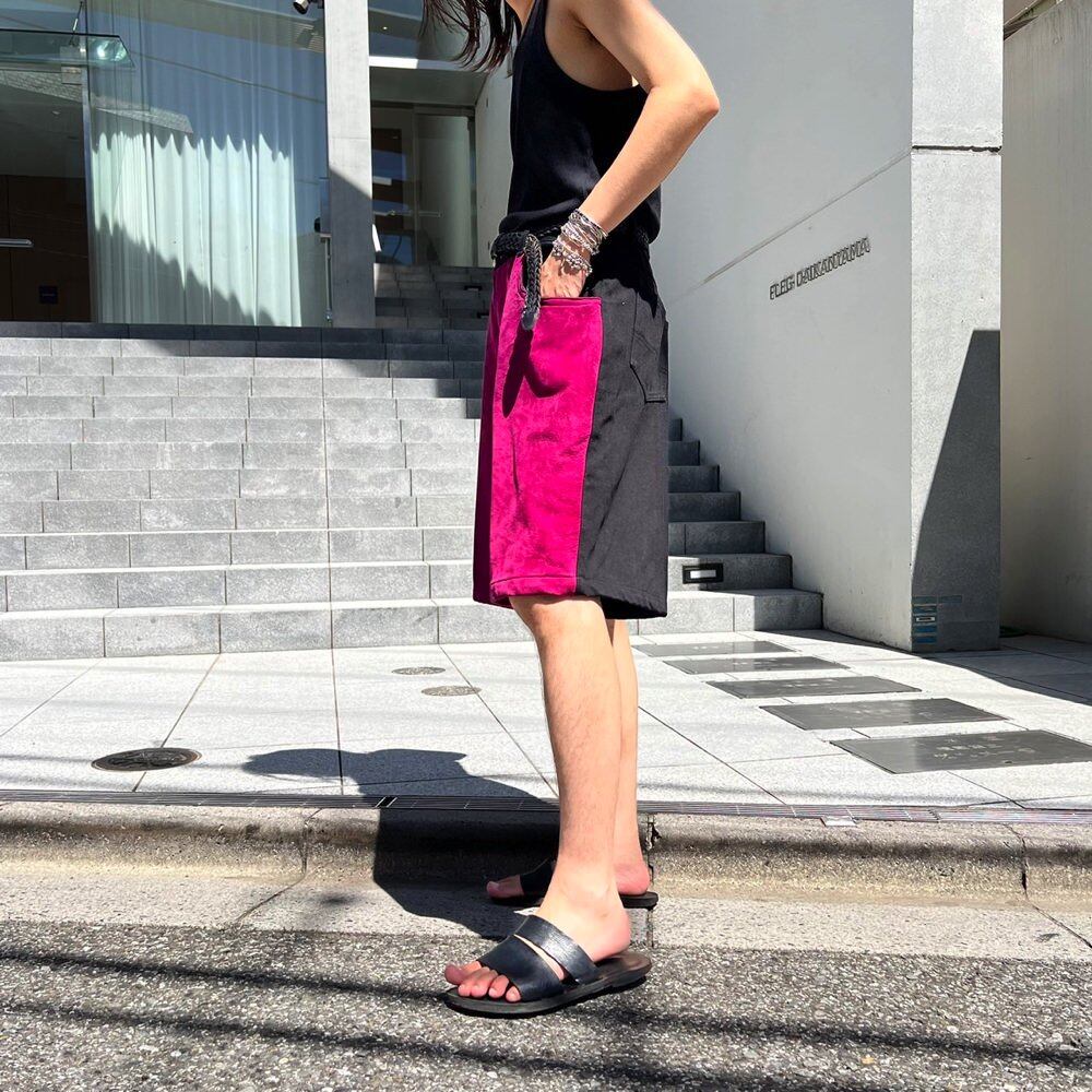 A unique vintage shorts from the 90s. The switch between pink suede and black denim is too innovative. This item is full of fun unique to old clothes. Slightly wide knee-length straight silhouette.