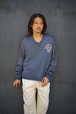 The 50/50 acrylic/rayon jacquard knit is lined with fleece and has a sweatshirt-like construction.