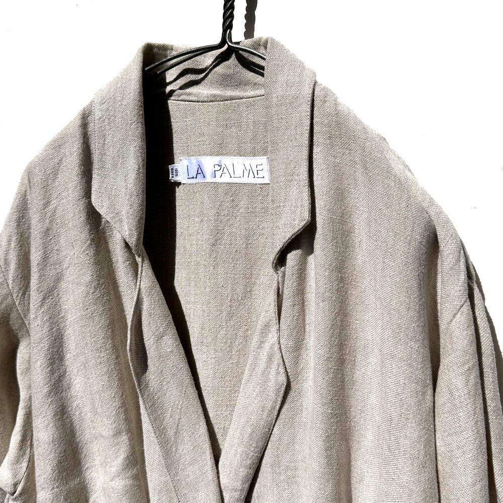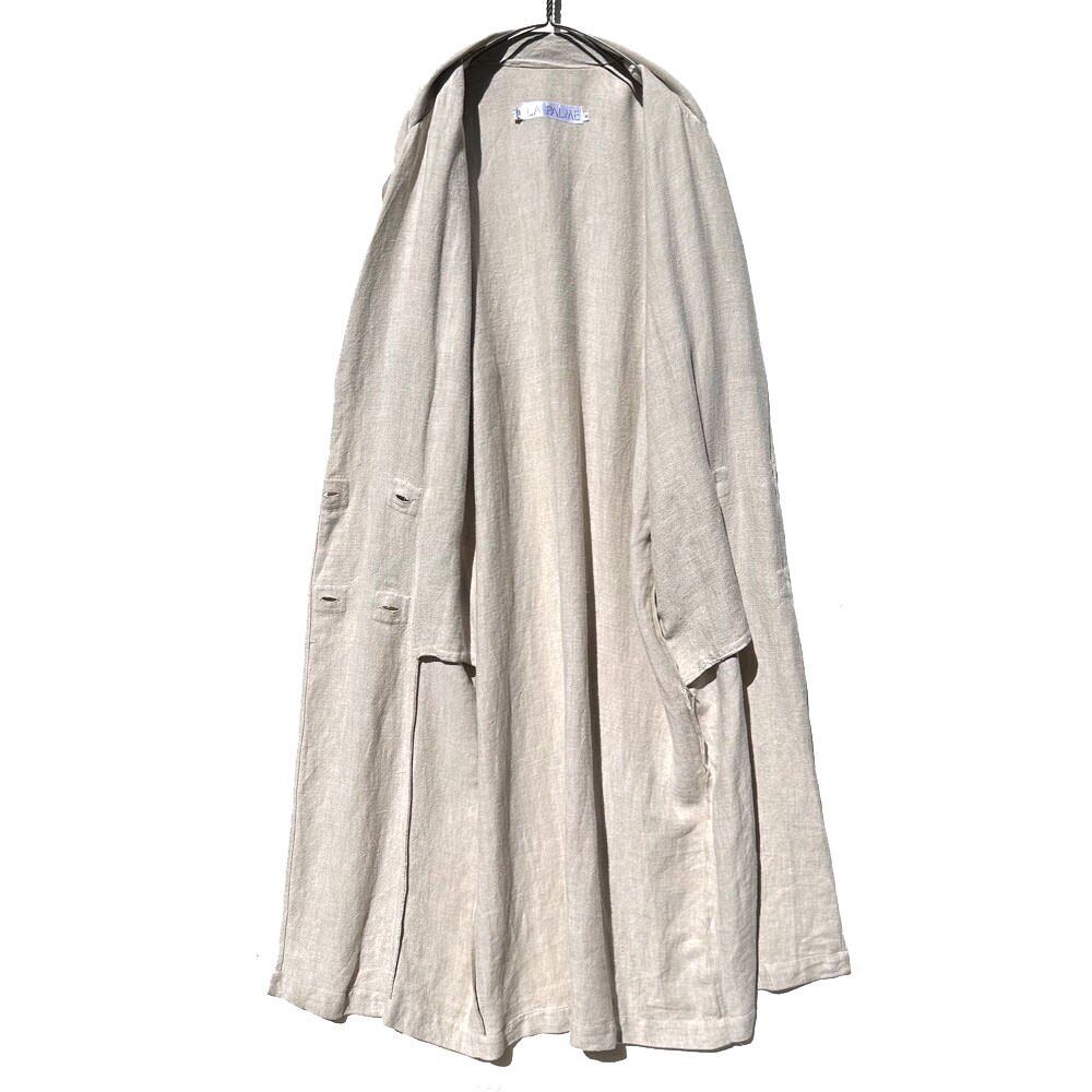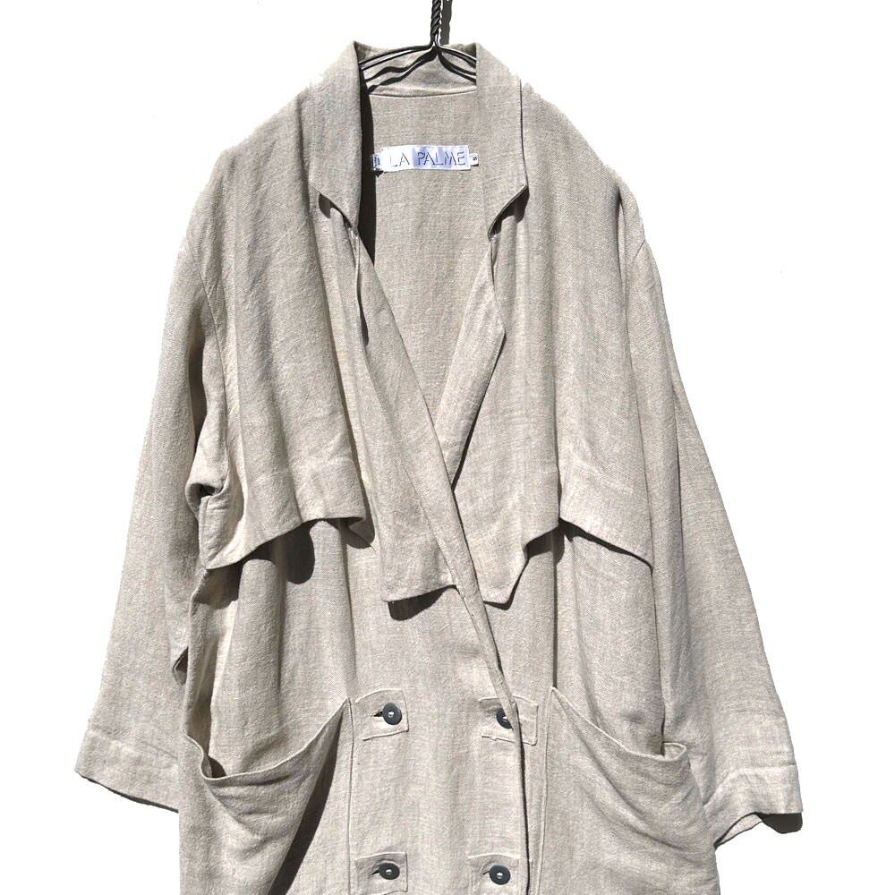 A maxi-length linen coat made by LA PALME from the 1980s.