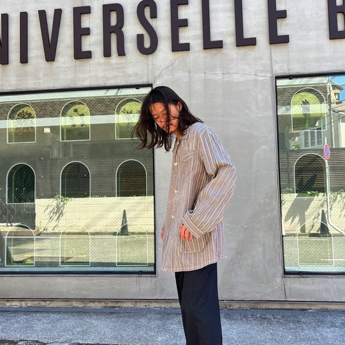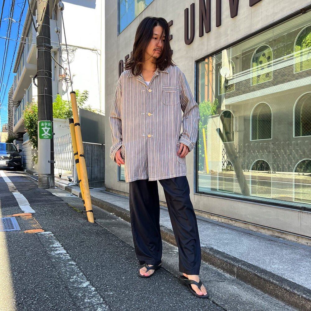 1950s euro vintage sleeping shirt Brown, sax blue, pink, and white multi-stripe pattern is a tasteful color.