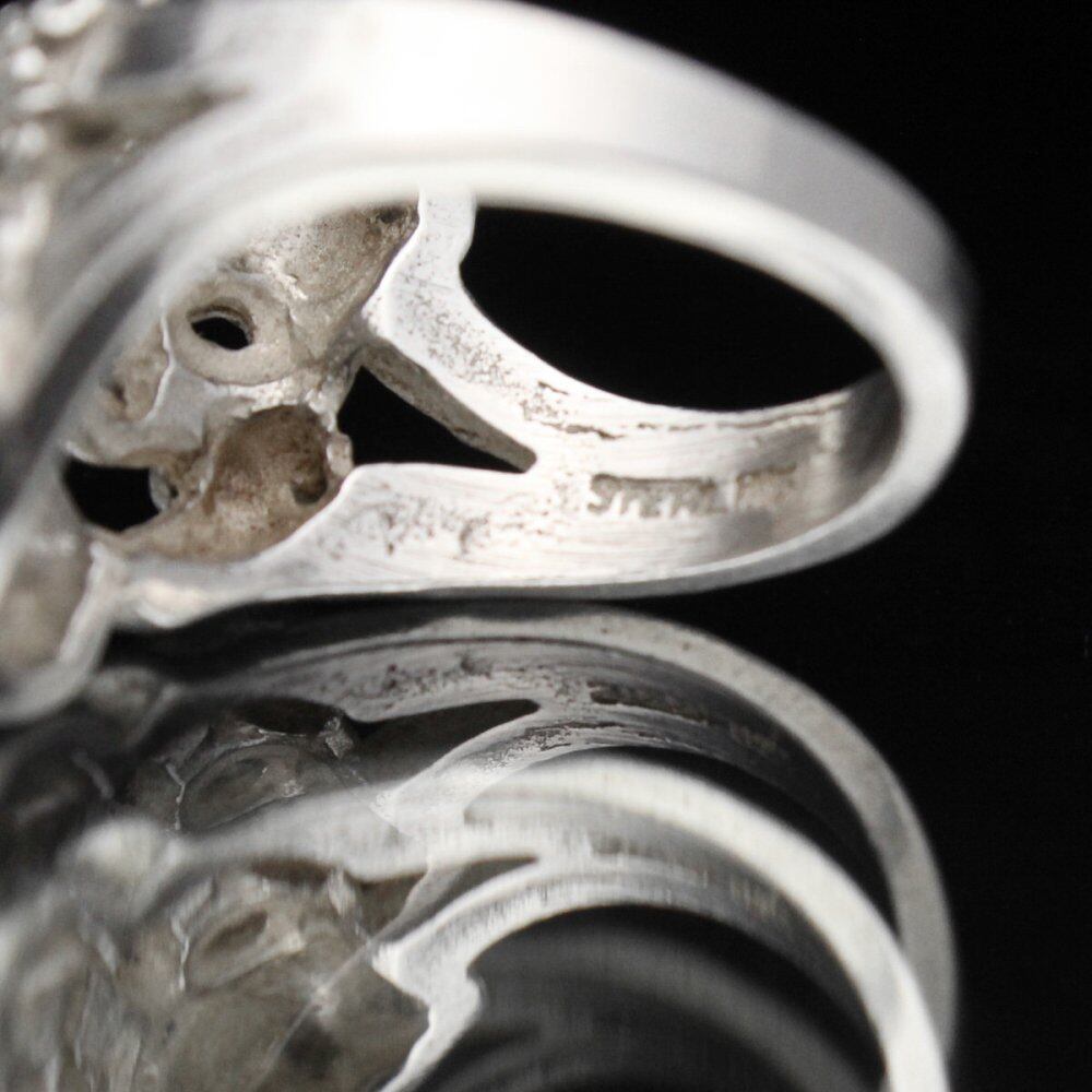 A vintage two-faced ring. It is said to have originated from the tragic and comedic masks used in ancient Greek plays, and it has various meanings such as Laugh now, cry later, such as Latin gangsters called Chicanos. It is a symbol that also relates to culture. While there are many small items, this one has a design with a strong presence. It is a three-dimensional and eye-catching individual. Engraved in sterling silver. Please check the condition in the photo and understand the vintage characteristics before purchasing.