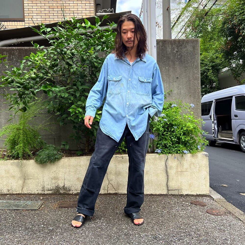 Big Mac chambray shirt from the 70s A very nice texture with fading due to aging and a feeling of rubbing of the fabric Vintage chambray shirt made of 100% cotton material whose price has been rising recently The size notation is 16 half L size, loose fit This item has a masculine silhouette.