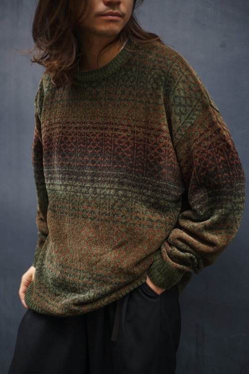 A comfortable velor crew neck knit with a fluffy and soft texture that feels like it contains air.