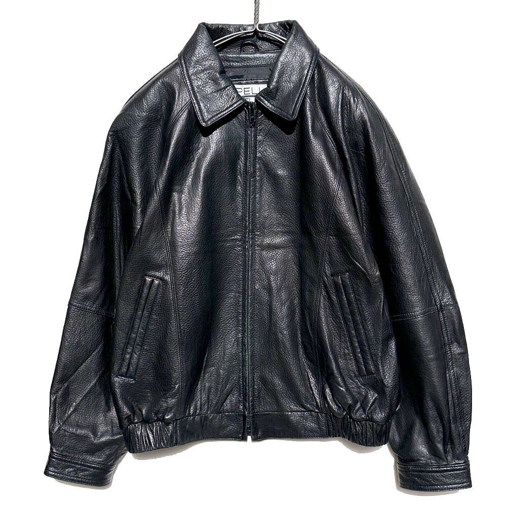 A zip-up leather jacket made by WILSONS from the 1990s.