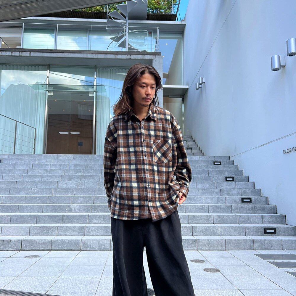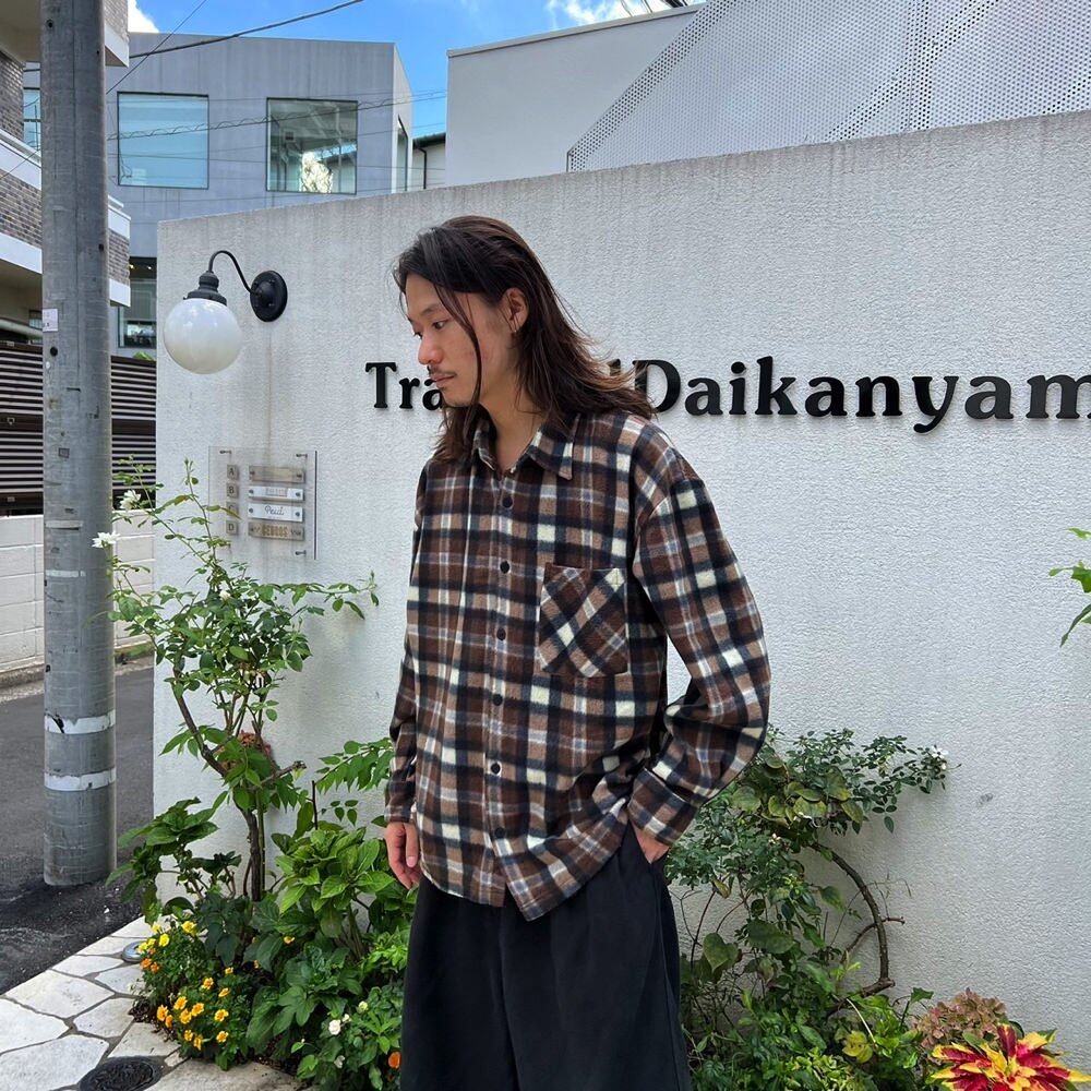 A fleece shirt from the 90s.It is made from a rare linen blend fleece fabric.Because it contains linen, it is softer and smoother than regular fleece fabric, making it light to the touch.It also goes well with brown, white, and black plaid patterns. Over-silhouette shirt with a loose and relaxed feel