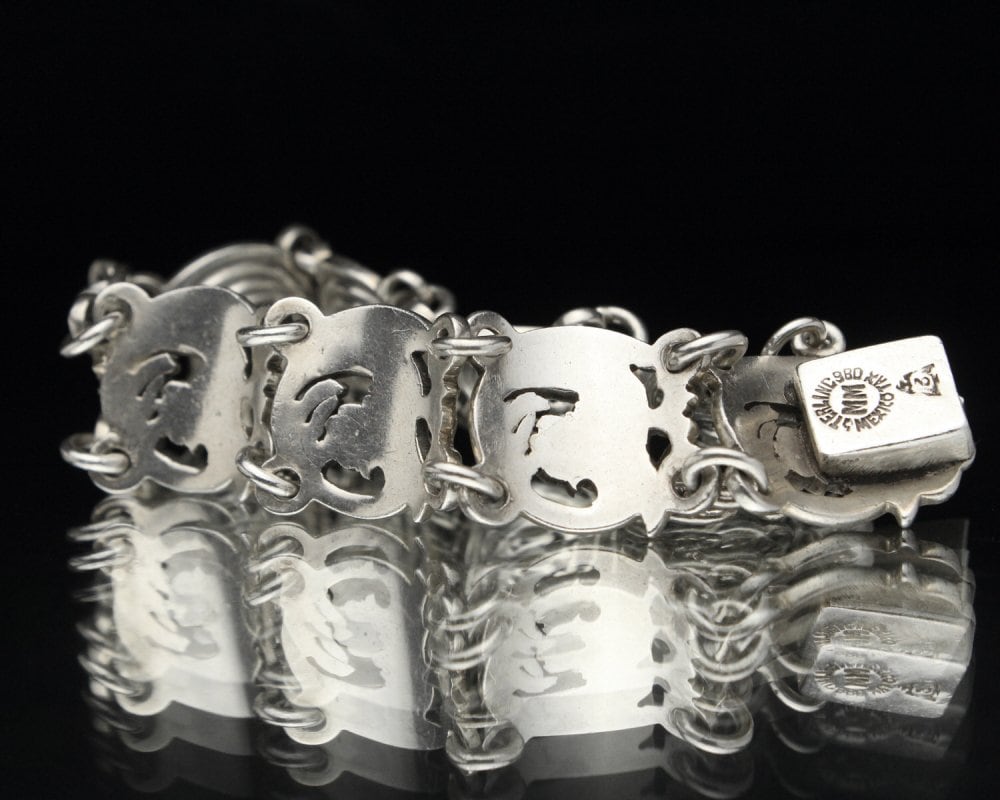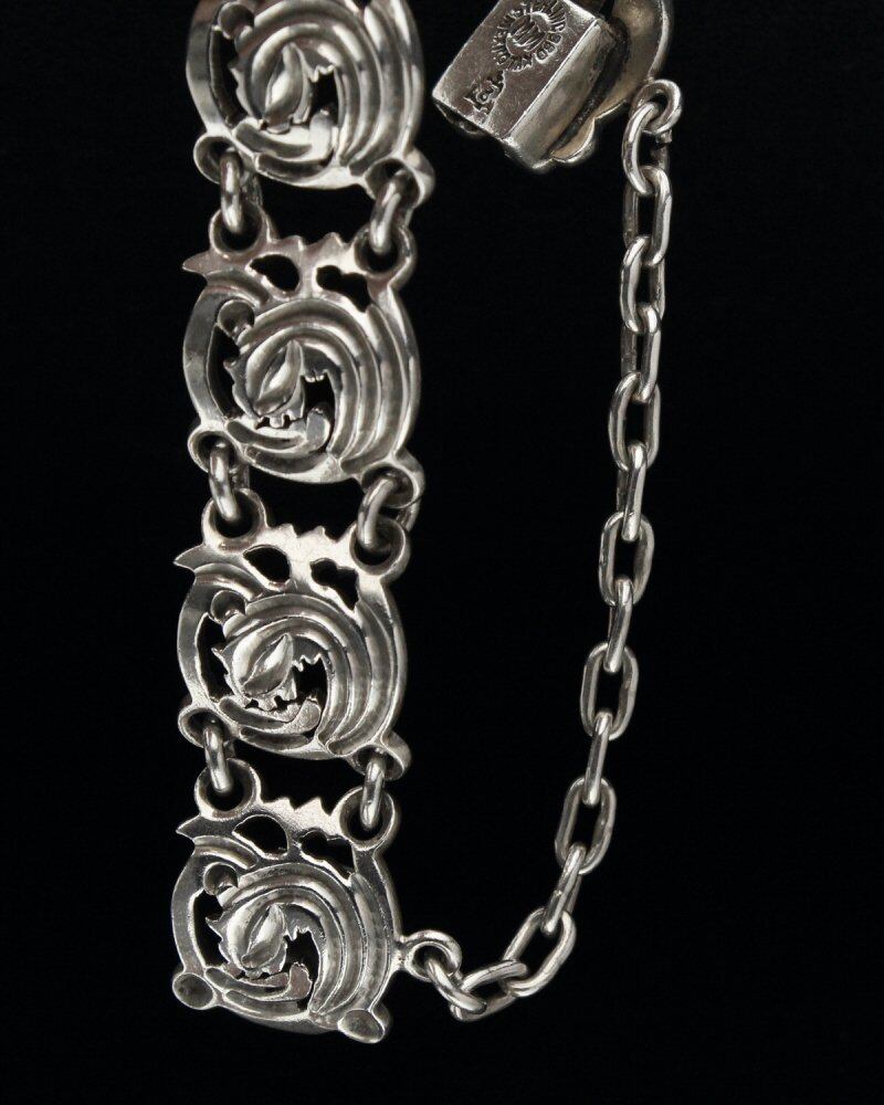 Made in Mexico - Taxco, one of the worlds leading silver mining areas, where many silver artists and craftsmen have gathered since ancient times. This is a vintage item that has attracted attention in recent years, with a unique evolution that shows influences from Aztec natives to Native American jewelry-like designs that show the influence of American Southwestern, and even sophisticated minimal design from Scandinavia. This is an individual from around the 1960s based on the hallmark, and the design, which looks like waves and plants, is an ethnic and manly design that is typical of Mexican vintage from this era. Each part is solid and has a strong presence, and is made of pure 980 silver, giving it a beautiful shine. Since it is an old item, there may be some scratches, etc. Please check the photos and understand the vintage characteristics before purchasing.