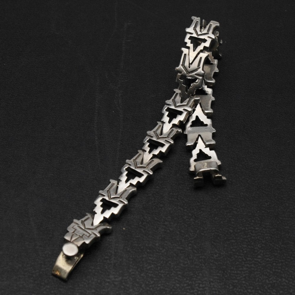 Made in Mexico - Taxco, one of the worlds leading silver mining areas, where many silver artists and craftsmen have gathered since ancient times. This is a vintage item that has attracted attention in recent years, with a unique evolution that shows influences from Aztec natives to Native American jewelry-like designs that show the influence of American Southwestern, and even sophisticated minimal design from Scandinavia. This is a traditional and manly design that is typical of Mexican vintage. Each carved part has its own individuality, is solid, and has a stronger presence, and the narrow construction gives it a casual yet just the right silhouette balance. Probably early 80s Taxco Mexico 925 silver stamp. Since it is an old item, there may be some scratches, etc. Please check the photos and understand the vintage characteristics before purchasing.