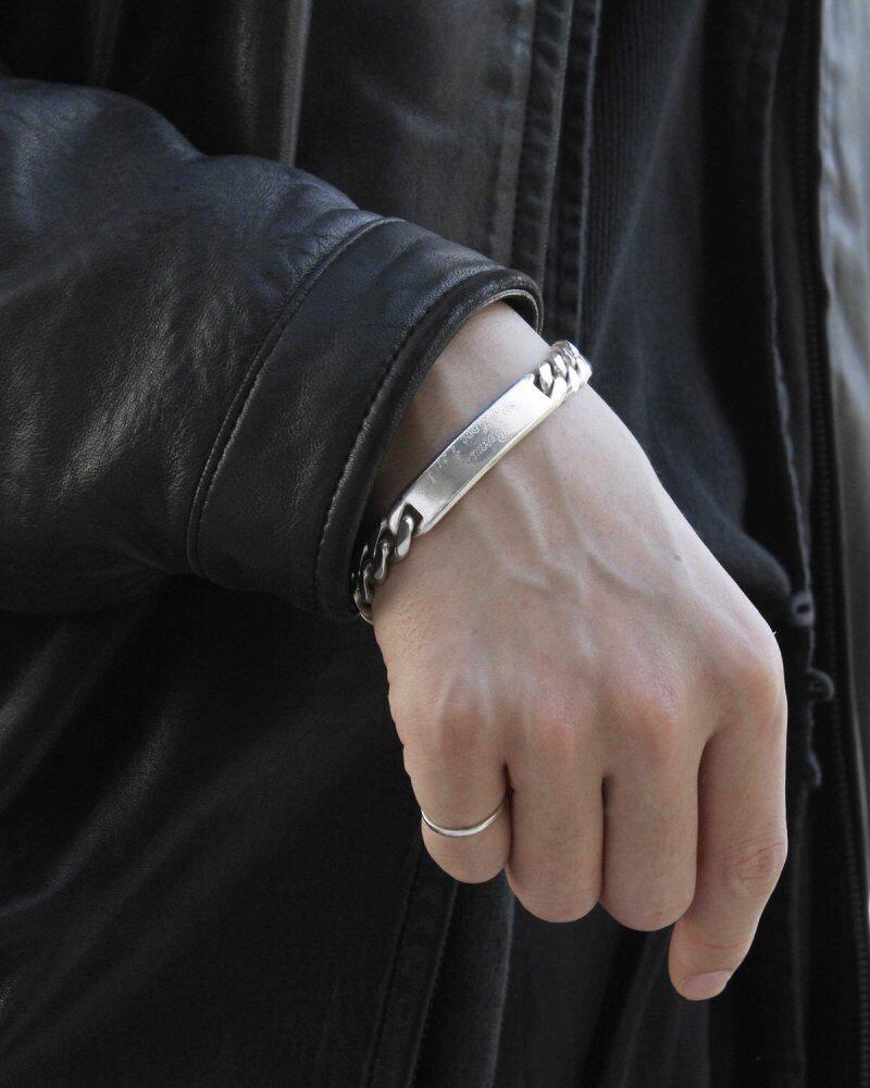 A very solid Italian ID bracelet, probably from the 1990s. It originated from the fact that it was sold (issued) to soldiers during the war, and it became popular as fashion jewelry from there. The chain is made in Italy, often made from molds, and each part is carved out, giving it a sturdy and solid feel. The plate bar is also solidly constructed, and has a design that says Because We Love You instead of the name. The aged and faded letters give it a casual vintage look. Made in Italy 925 stamp. Please check the photos and understand the vintage characteristics before purchasing.