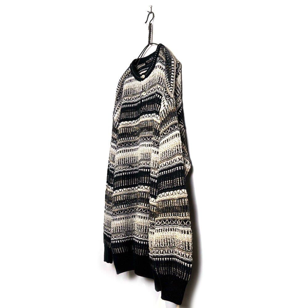 90s Henley Neck Sweater A mix of black, off-white, beige, gray, and monochrome tones.Its a wool x acrylic knit that feels nice to the touch and doesnt feel prickly.Its a good size and has a nice size. Dead stock, unused vintage sweater in good condition.