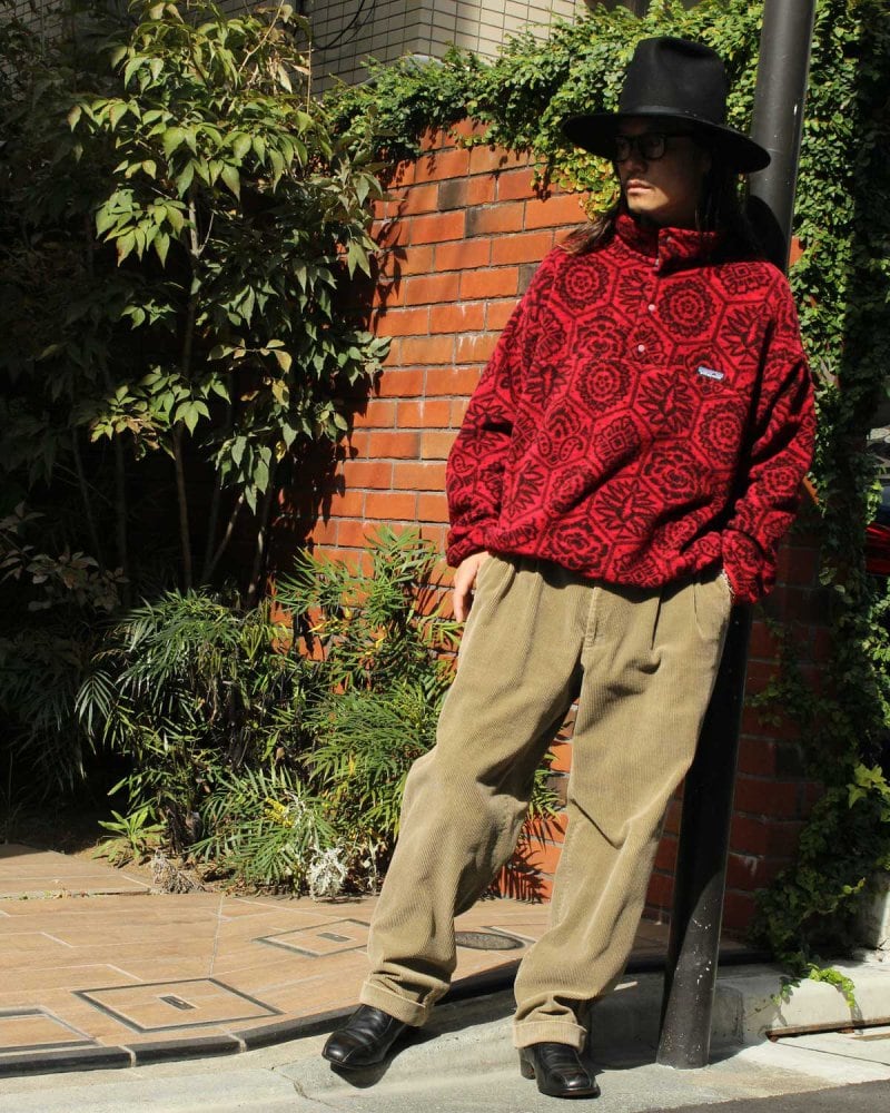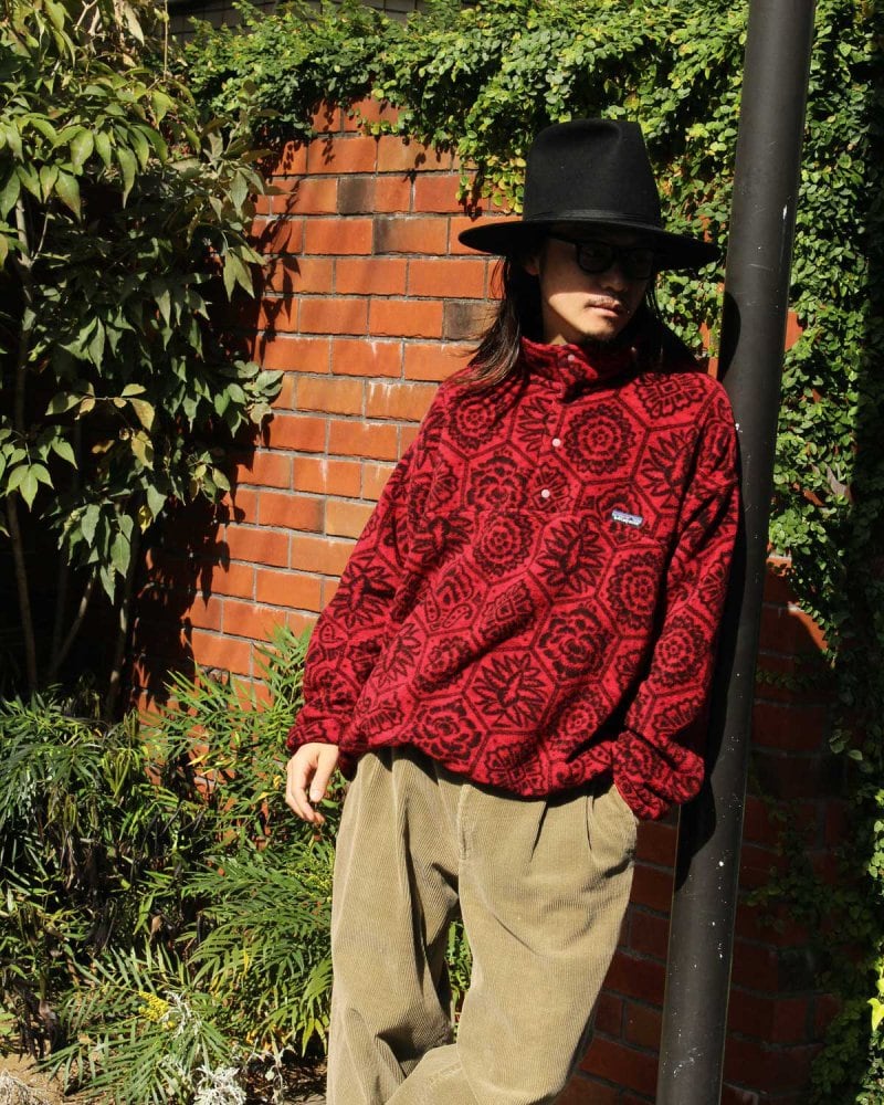 Synchilla Snap-T is a product developed in the 1980s that uses double-sided fleece to prevent pilling. This is a print series made in 1995, and although it is ethnic, the contrasting red and black design gives it a mysterious and cosmic impact. A relaxed silhouette with a precious XL size that can be worn loosely. This is a rare item in good condition. Since it is an old item, there may be rare signs of deterioration over time. Please check the photos and be aware of the vintage characteristics before purchasing.