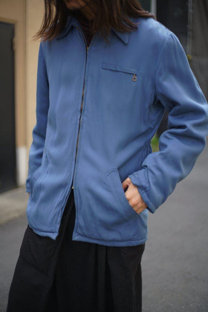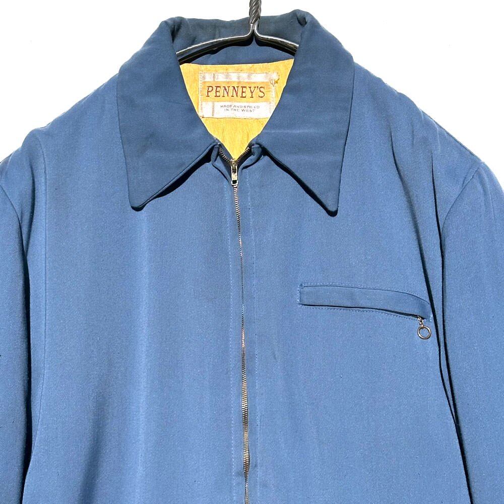 A PENNYS gabardine jacket from the 1950s.<BR> This item is made of a sturdy rayon-blend gabardine fabric, and although there are some stains, the fabric is in very good condition, and combined with the dull saxophone blue fabric, it creates a very solid atmosphere.