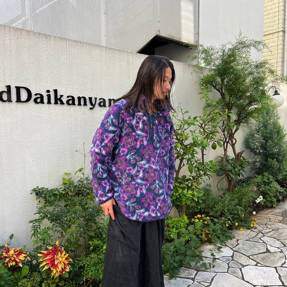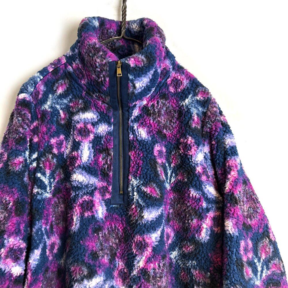A 90s pullover fleece shirt with a botanical pattern in suspicious colors of navy and purple.Its an extremely comfortable piece made of fluffy, soft and light fleece fabric.It has a moderately loose and relaxed silhouette on both sides. A vintage fleece item that has hand pockets and is easy to use.