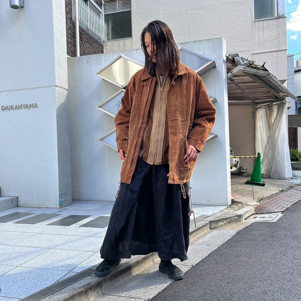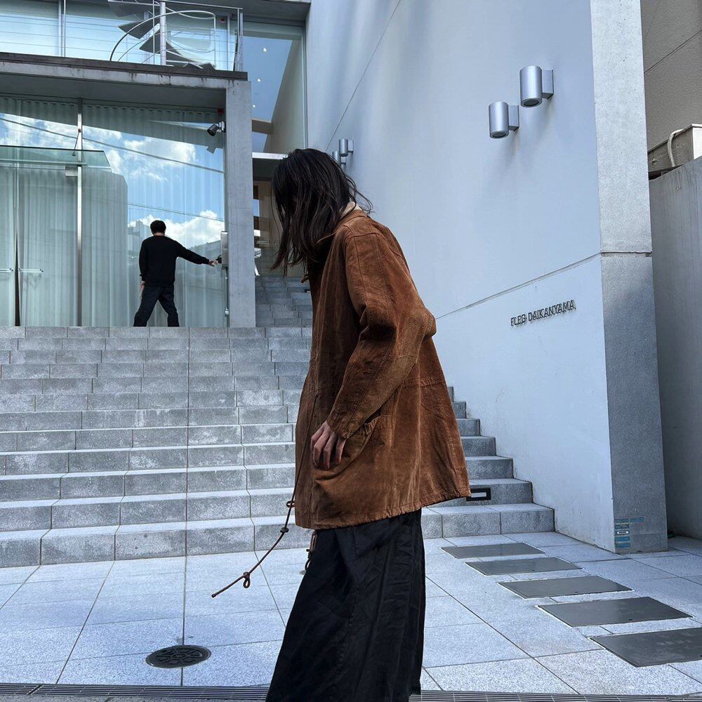 A field jacket type design that is easy to match with 80s suede jackets.A matte texture typical of suede with an earthy and masculine feel.Brown color.A piece of pig suede material that is lighter than cow suede.The loose size makes it perfect for a layered style in winter. This is also a suitable item