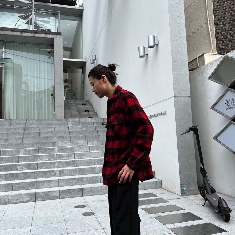 60s Town Craft Wool Shirt The bright red and black buffalo check pattern gives it a classic American casual style.100% wool fabric is thicker than a regular wool shirt, and the rustic atmosphere makes it feel fresh again. A vintage wool shirt with a relaxed silhouette and a good size.