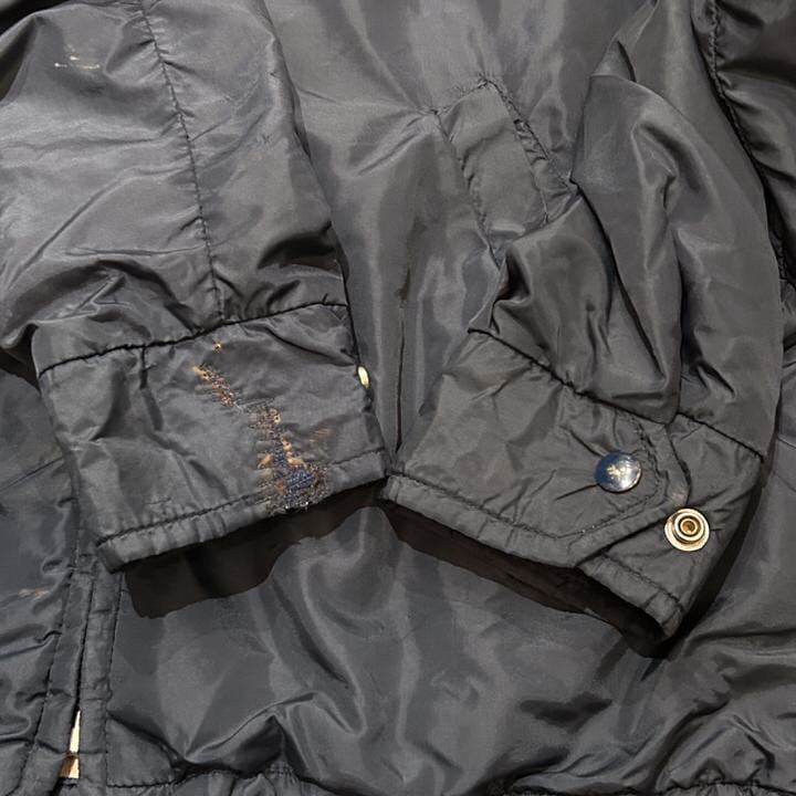 Nylon coach jacket from the 1970s. The soft nylon material, which is unique to vintage, is attractive because it doesnt get crunchy. The natural lining and set-in sleeves create a beautiful silhouette line, and you can see the beauty of old items. Although the overall design is simple, the municipal fire department patch on the front is an accent. A silhouette that looks neat at size 36. The dark charcoal navy color has aged but has a nice atmosphere. Quality: Nylon Color: Navy SIZE: 36 [Size] Shoulder width: 49cm Body width: 58cm Sleeve length: 60cm Length: 70cm [Model size] Height: 168cm Shoulder width: 45cm B (chest): 85cm W (waist): 71cm Rare as it is an old item There is some deterioration over time. We try to make the product photos as close to the actual color as possible, but the color may differ from the actual product depending on your monitor settings, room lighting, etc. Please check the photos and understand the vintage characteristics before purchasing. *Please see here for the measurement method.