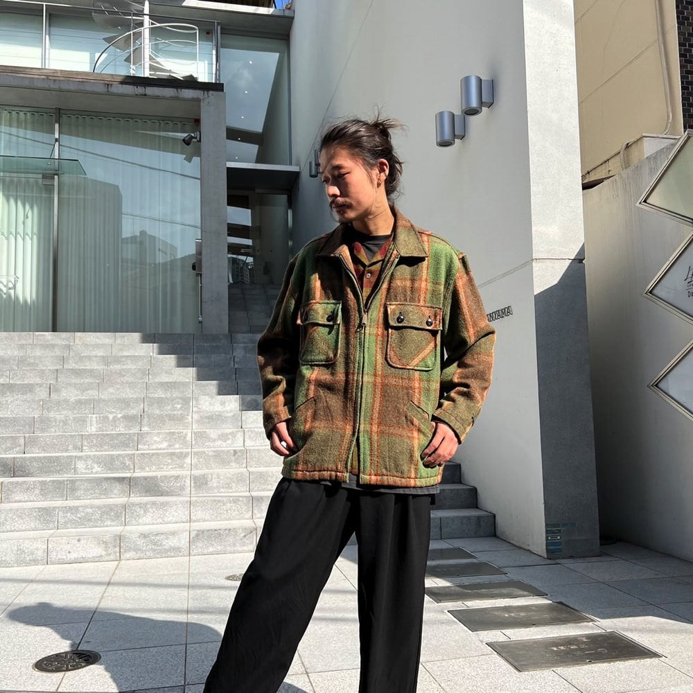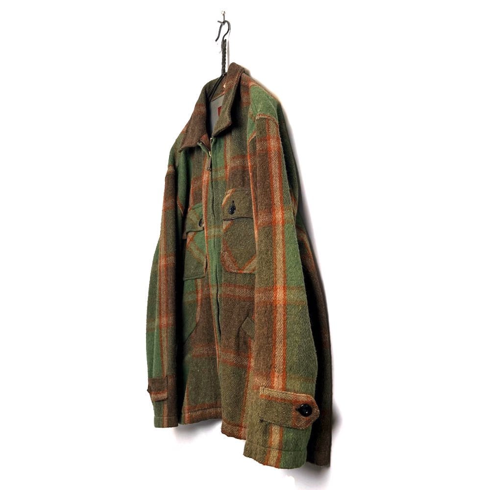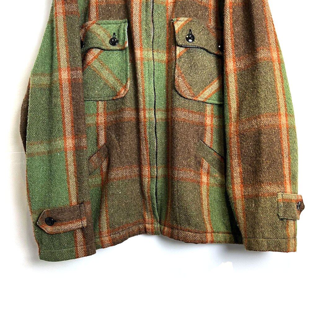 1960s Sears CPO Jacket The earthy green and brown check pattern gives it a very nice atmosphere.Made from a blend of acrylic, wool, cotton, and linen, its soft and comfortable to wear without any prickling sensation. A vintage jacket with a relaxed fit and a great silhouette.