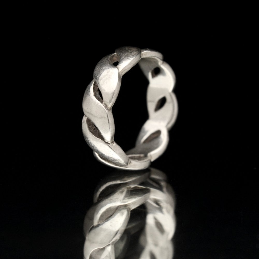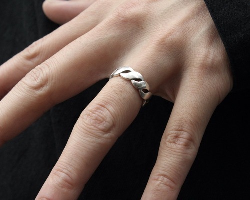 A minimalist design made of hoops with a wavy chain motif. It is an individual that is not too narrow and has a mannish look. Probably made in America, stamped 925. As this is a vintage item, there may be scuffs and scratches. Please check the photos and understand the vintage and antique characteristics before purchasing.