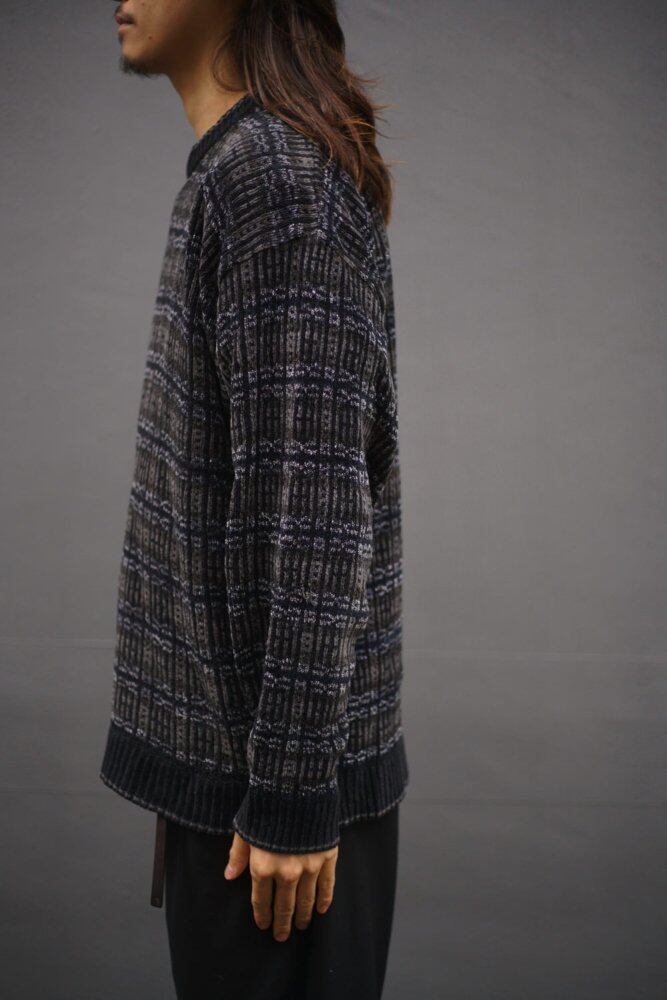 A comfortable velor crew neck knit with a fluffy and soft texture that feels like it contains air.
