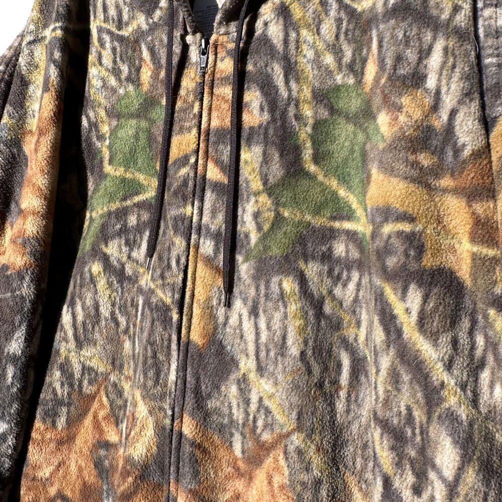 Camouflage fleece hoodie made by FieldStaff from the 1990s.