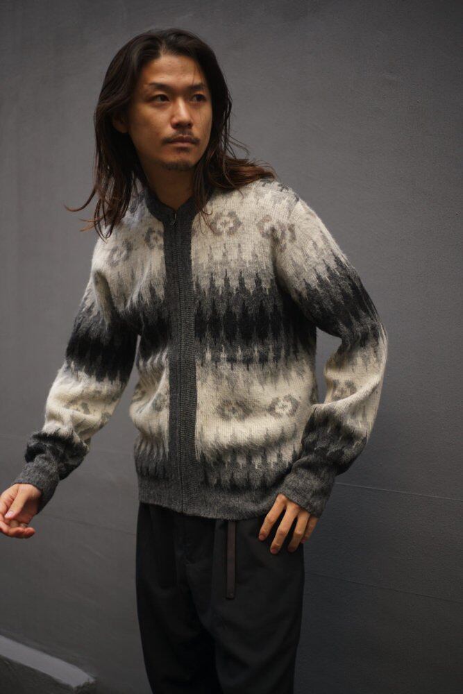 Made of acrylic knit with a light texture, it has a sporty zip-up type and a sexy body with long bushy hair.