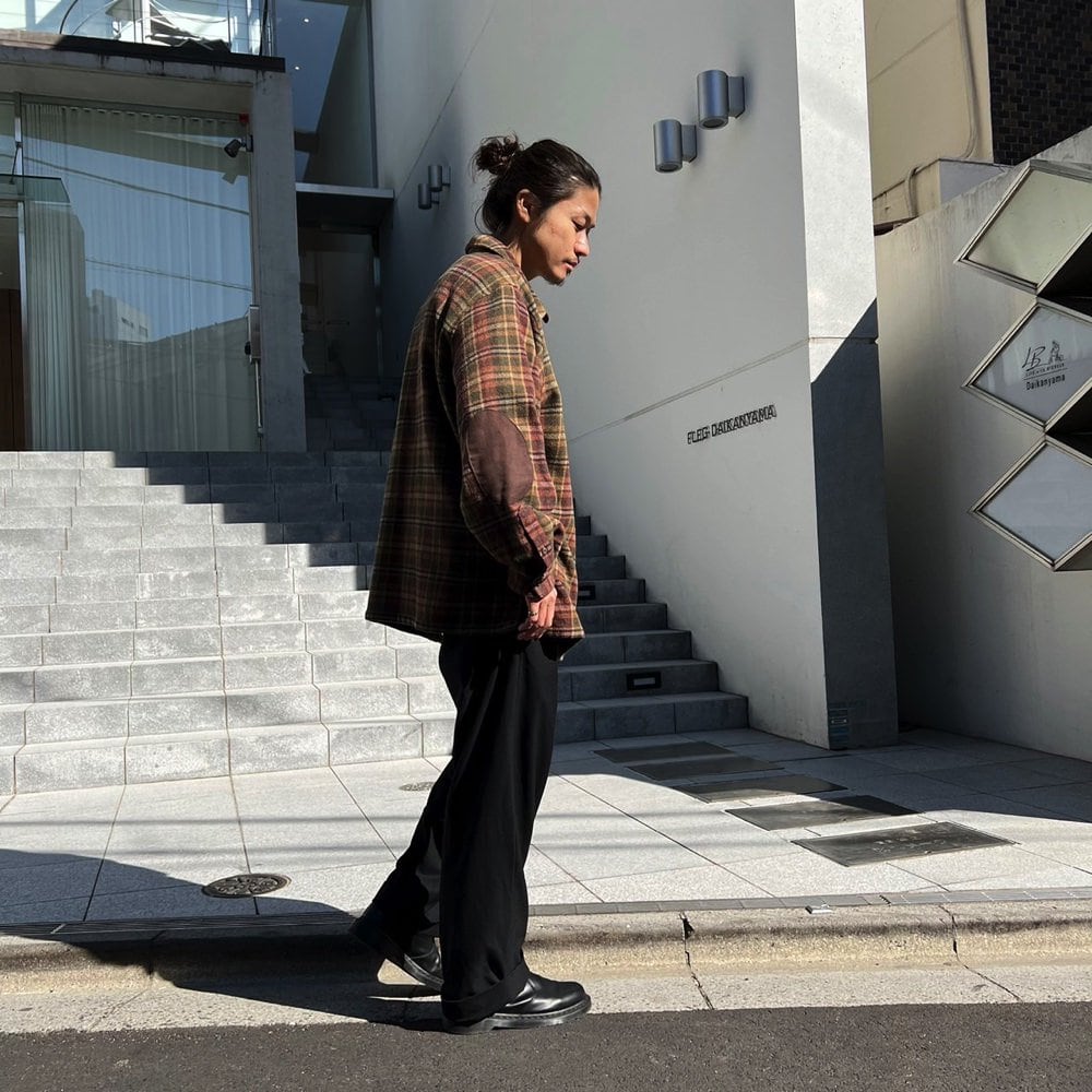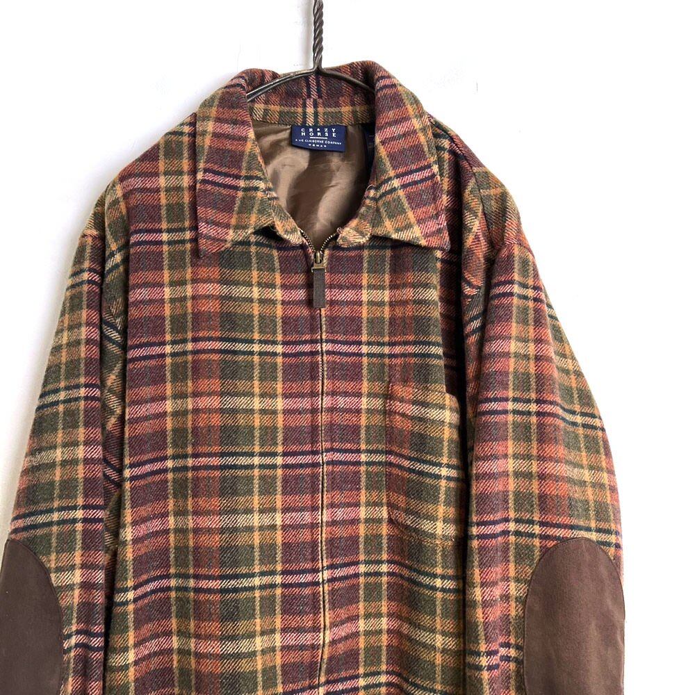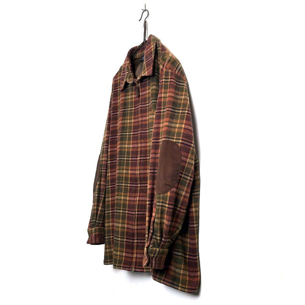 A 90s wool shirt with a loose and relaxed silhouette and a sporty front zip design.Its a size that can be used as an outer shirt.An earthy brown and olive check pattern.Made from a soft and gentle blend of wool, acrylic, and polyester fabric. This is the first item that feels good against your skin.
