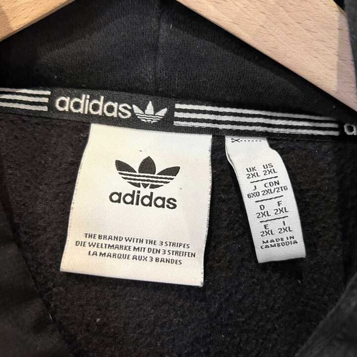 Originals sweatshirt parka with the classic Trefoil logo. The red velor line is impressive on the aged black body. The cotton-based sweat fabric is comfortable, and the hood is made of ripstop fabric for a loose design. 2XL size with a relaxed silhouette. Quality: 7:3 Cotton / Poly Color: Black SIZE:2XL [Size] Shoulder width: 62cm Width: 73cm Sleeve length: 70cm Length: 73cm [Model size] Height: 175cm Shoulder width: 43cm B (chest): 85cm W (waist): 71cm Since it is an old item, there may be rare cases of deterioration over time. We try to make the product photos as close to the actual color as possible, but the color may differ from the actual product depending on your monitor settings, room lighting, etc. Please check the photos and understand the vintage characteristics before purchasing. *Please see here for the measurement method.